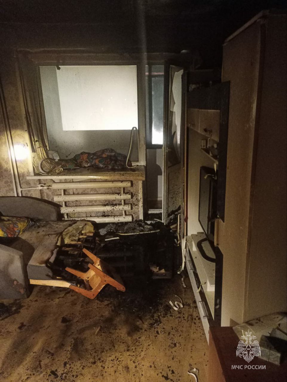 Поступило сообщение о пожаре в однокомнатной квартире на 4 этаже пятиэтажного жилого дома на улице Менделеева.