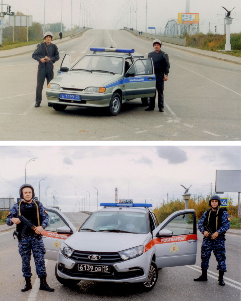 Архивными и современными фото службы делятся сотрудники вневедомственной охраны из Вологодской, Липецкой, Нижегородской, Рязанской областей и Республики Татарстан.