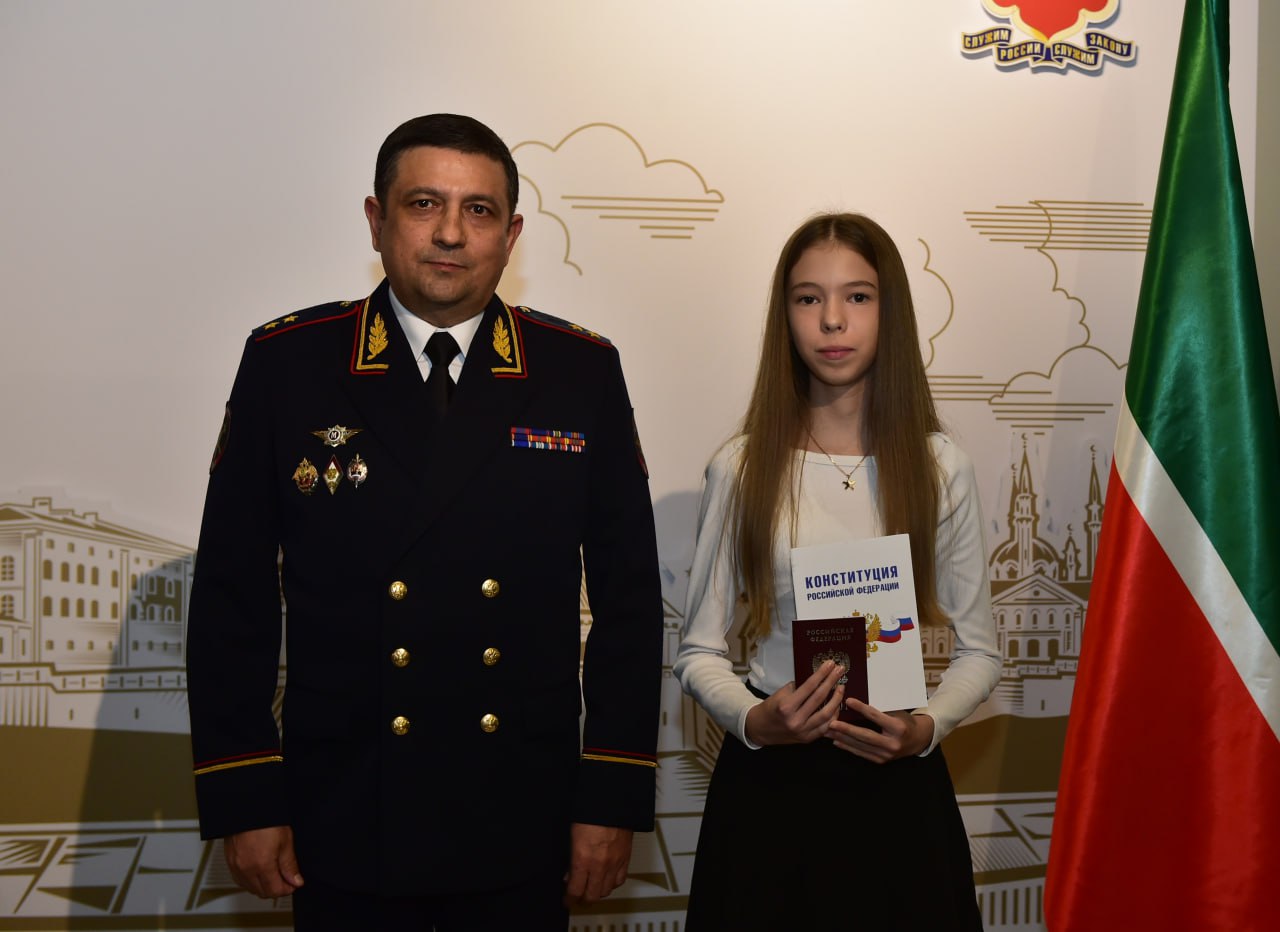 Министр внутренних дел по Республике Татарстан генерал-лейтенант полиции Дамир Сатретдинов вручил паспорта 11 –ти татарстанцам, которым исполнилось 14 лет.