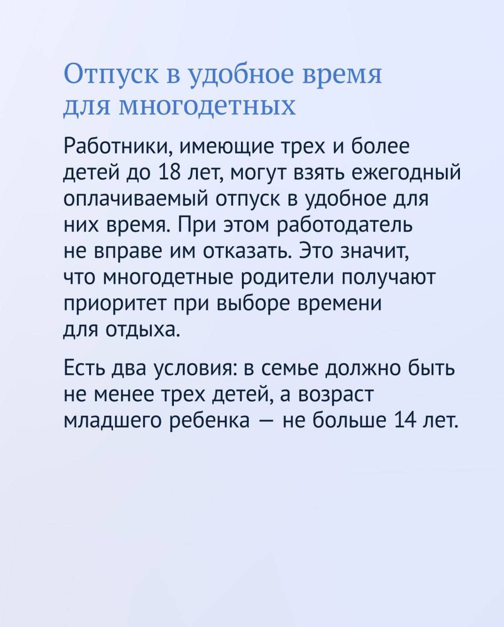 У работников с детьми есть дополнительные трудовые гарантии. Какие - об этом читайте в карточках