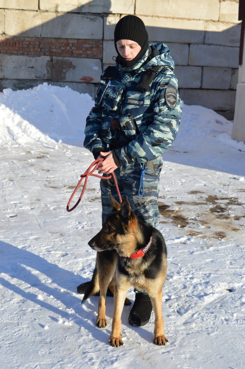 Первым делом кинолог устроил экскурсию по своим владениям, рассказал об истории кинологической службы, о том, как строится рабочий день, показал, как проводятся тренировочные занятия и дрессировка четвероногих питомцев, ознакомил с условиями их содержания. Кинолог и его напарник – немецкая овчарка Вояж работают в команде совсем недавно, но несмотря на это уже успели подружиться и доверяют друг другу. Перед собакой стоит задача: найти имитатор гексогена. Кинолог дал команду, а через несколько секунд собака села около одного из металлических колб – это условный знак, что взрывчатка здесь.