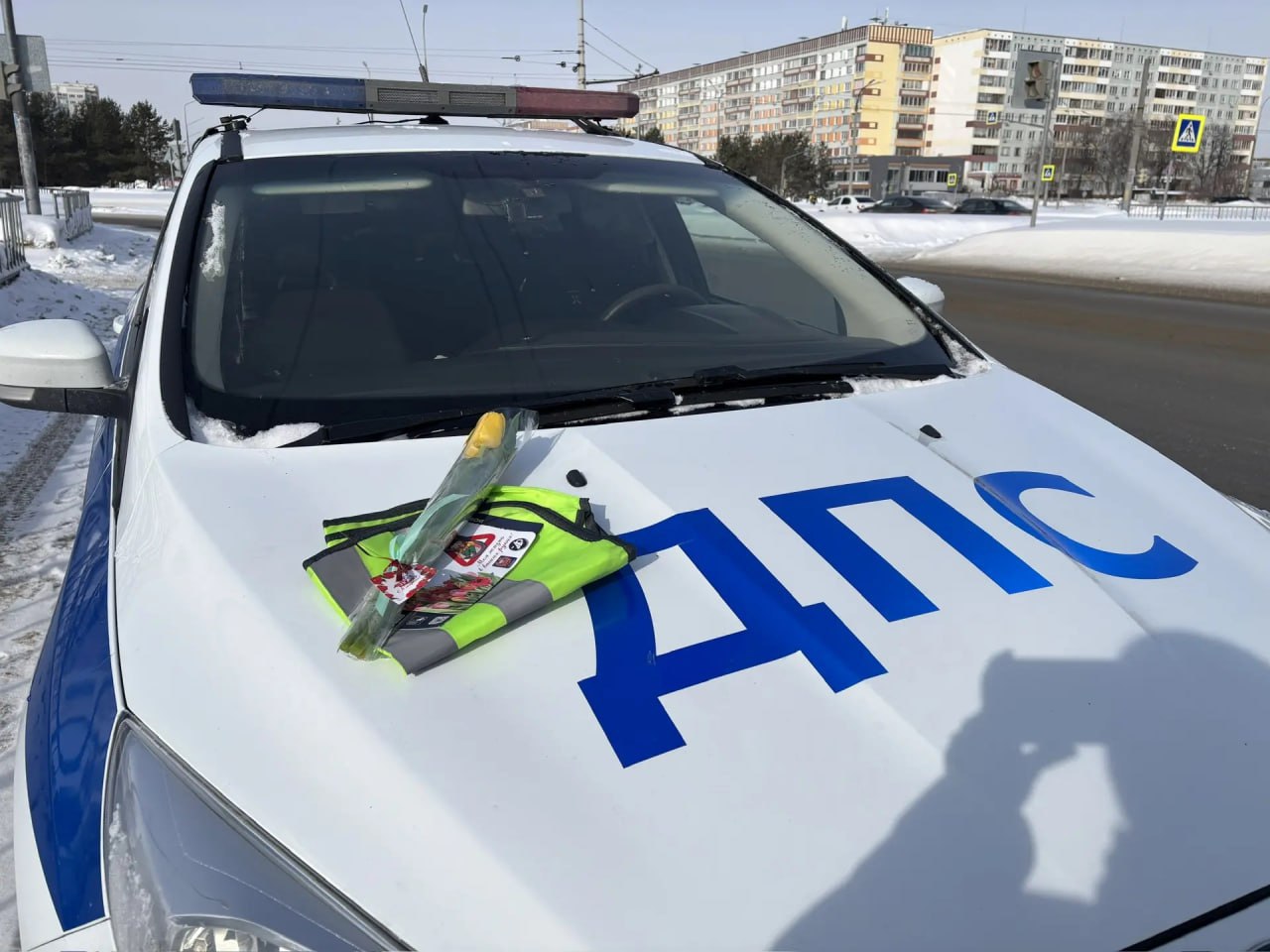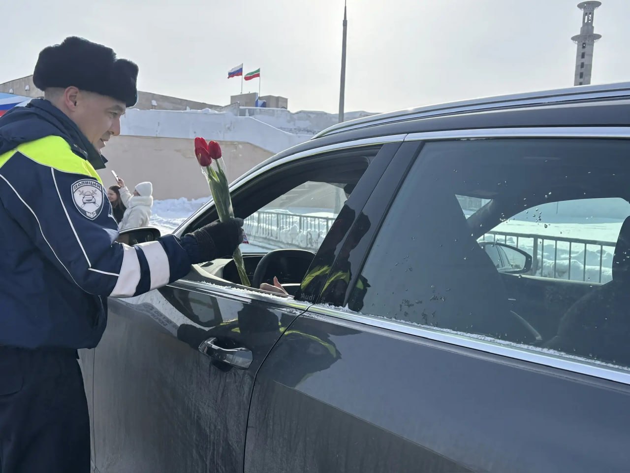 Сотрудники Госавтоинспекции Набережных Челнов поздравили женщин с праздником и напомнили им о правилах дорожной безопасности