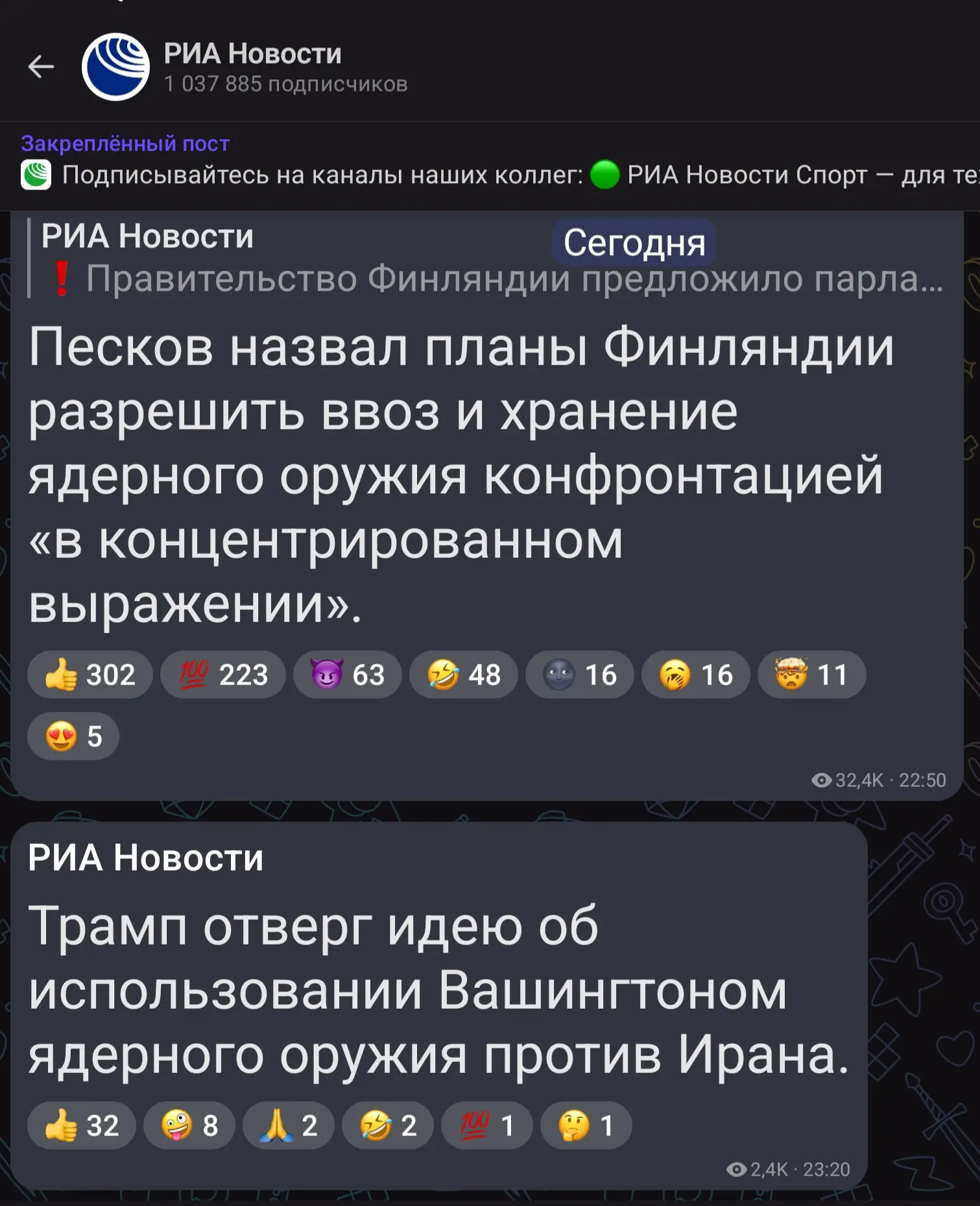 Вместо этого произвести пуск МБР по цели в Тихом океане. Сжечь там какой-нибудь ненужный, некрасивый и необитаемый остров. До тла. Показать мощь и решимость России применить при необходимости то, о чем раскукарекались западные военные авантюристы. Приоткрыть нашим дорогим западным партнёрам дверь в ад, да так, чтоб их обдало его жаром и паром котлов, где им скоро придется с чертями вариться.