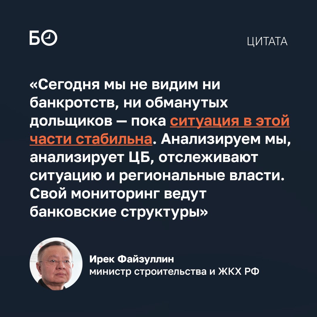Говоря о ситуации на рынке недвижимости, Файзуллин отметил, что объем продаж объективно снижается — цена денег высокая, снижен объем льготных программ. «Если в прошлом году в России выдали 380 тысяч льготных семейных ипотек, то в этом году уже больше 290 тысяч кредитов по семейной ипотеке», — отмечает он. По словам министра, самый тяжелый момент для девелоперской сферы — это отсутствие льготной ипотеки на вторичное жилье.