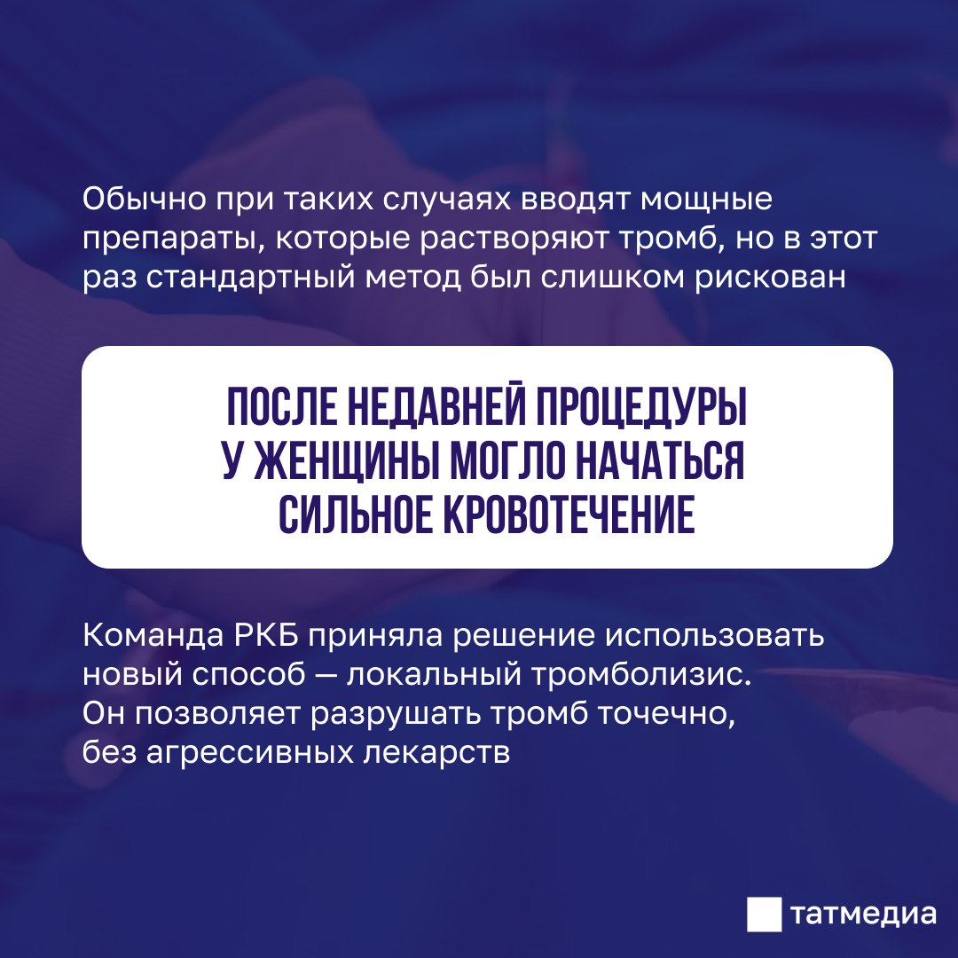 Рассказываем, как врачи Республиканской клинической больницы спасли от смерти жительницу Татарстана, растворив тромб легочной артерии новейшим методом.
