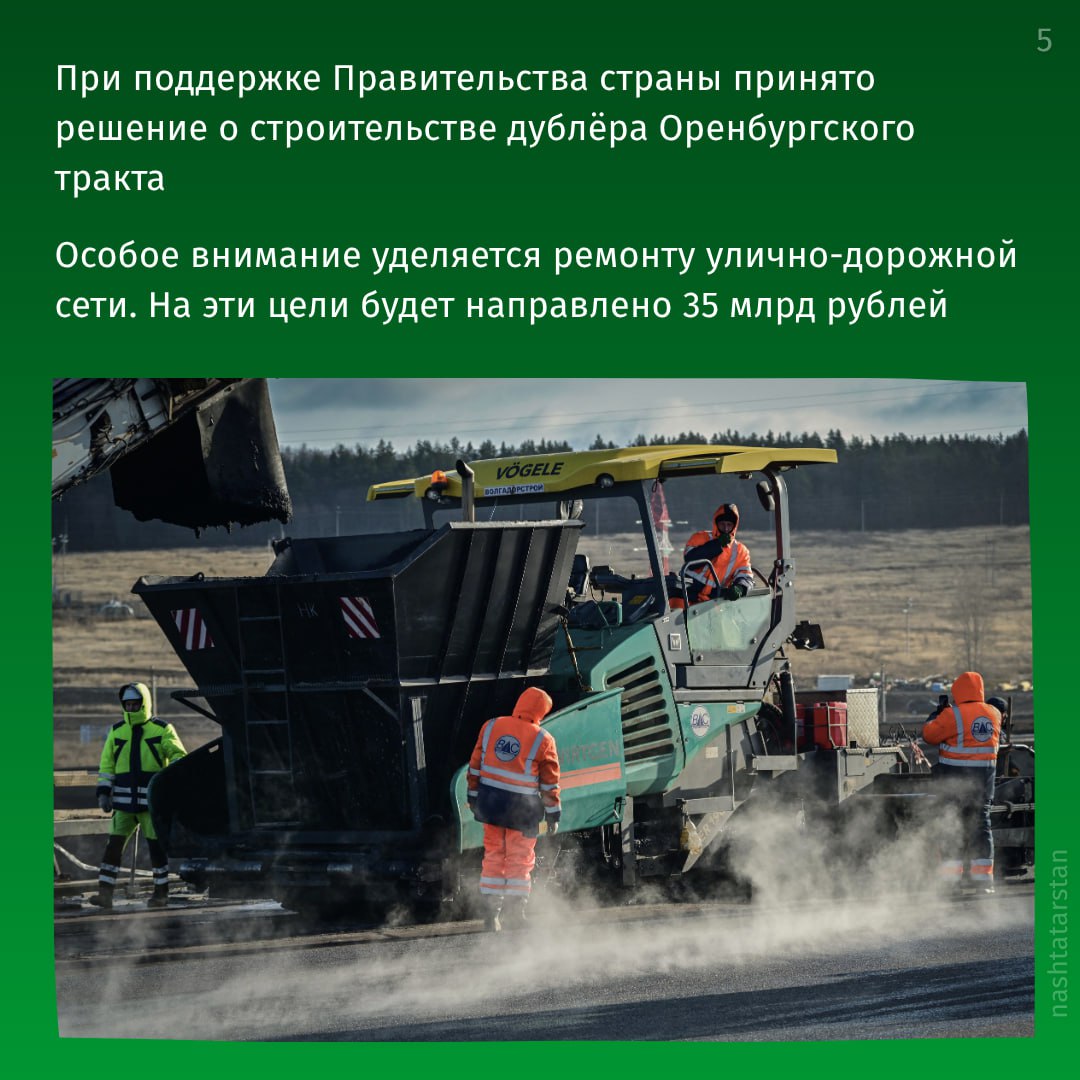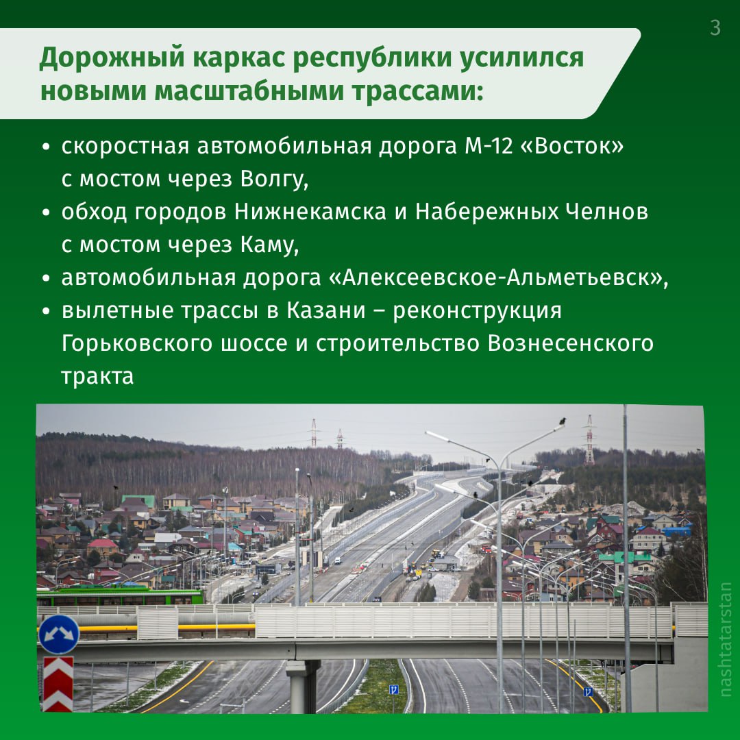 В своем ежегодном Послании Государственному Совету Татарстана Рустам Минниханов отметил, что за последние пять лет дорожный каркас республики усилился новыми масштабными трассами.