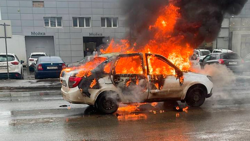 На улице Первопроходцев в Нижнекамске произошел пожар в автомобиле «Лада Гранта», в результате которого пострадал водитель.