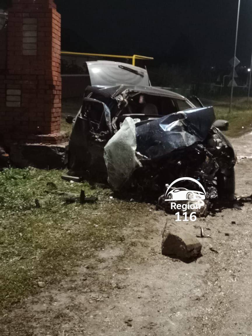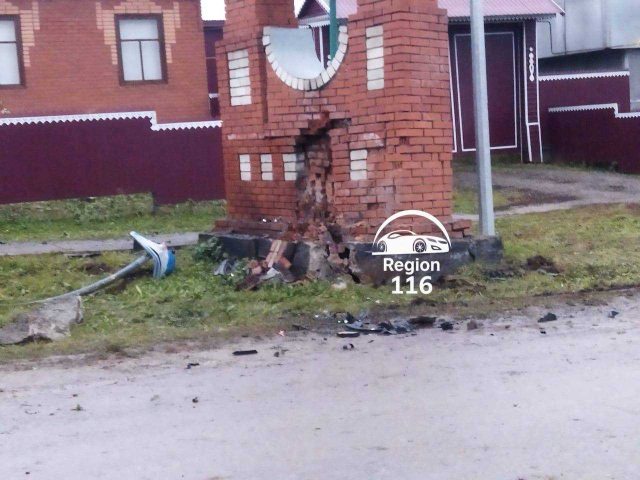 Сегодня ночью в Балтасинском районе Татарстана водитель легковушки на большой скорости съехал в кювет и влетел в кирпичную стелу.