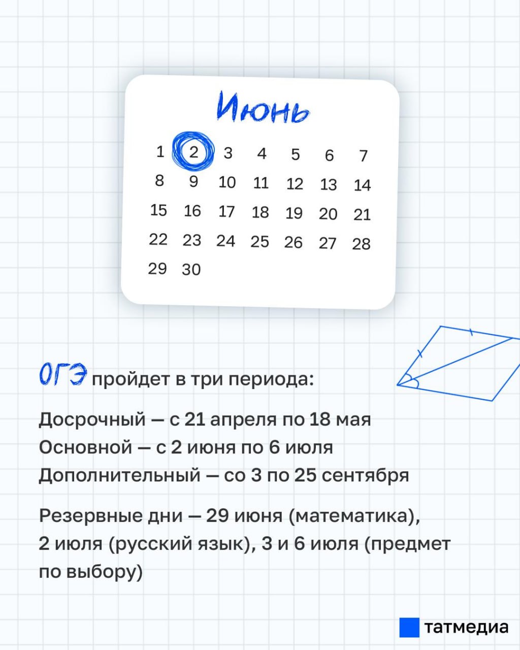 Основной период сдачи ЕГЭ назначен на 1 июня – 9 июля, а ОГЭ 2 июня – 6 июля.