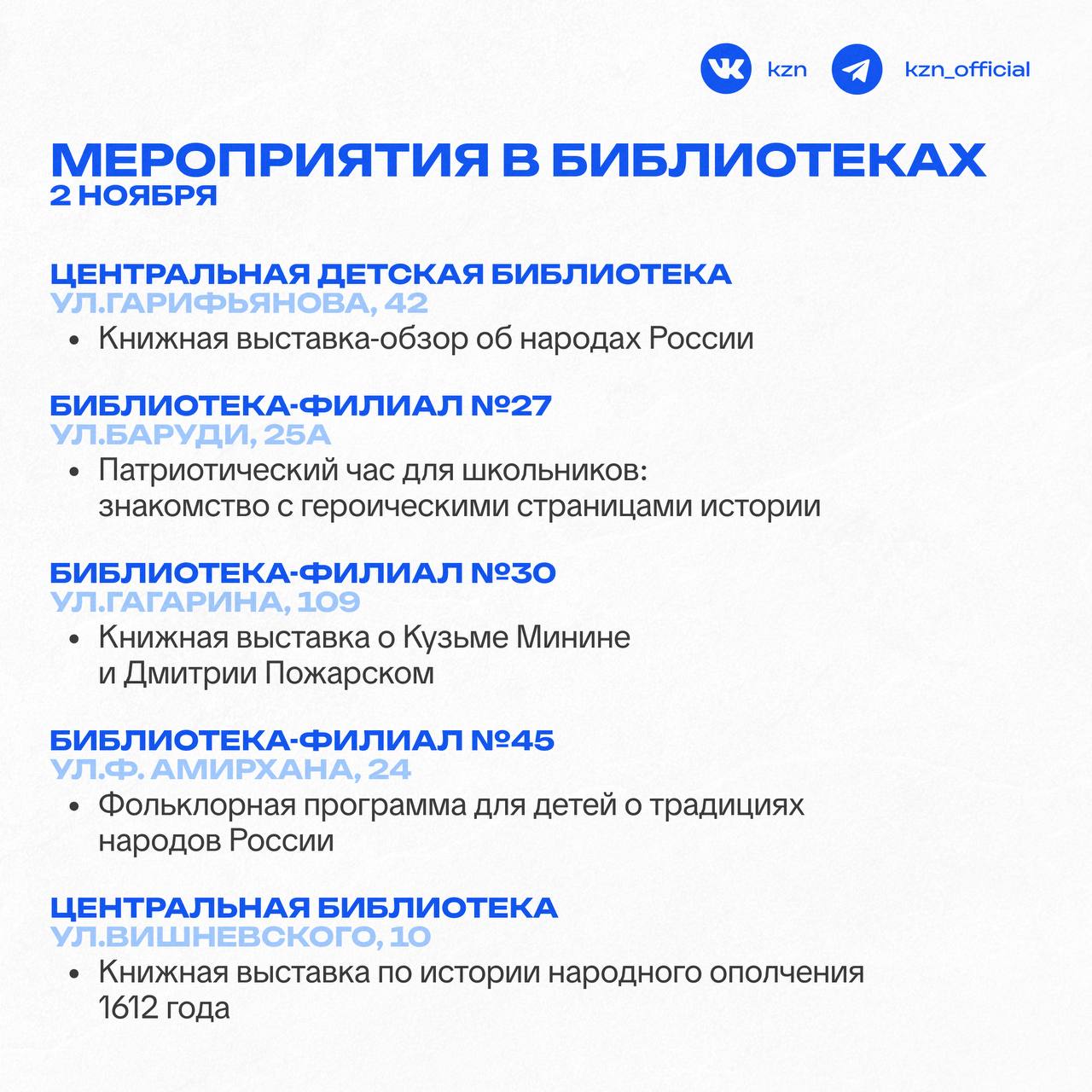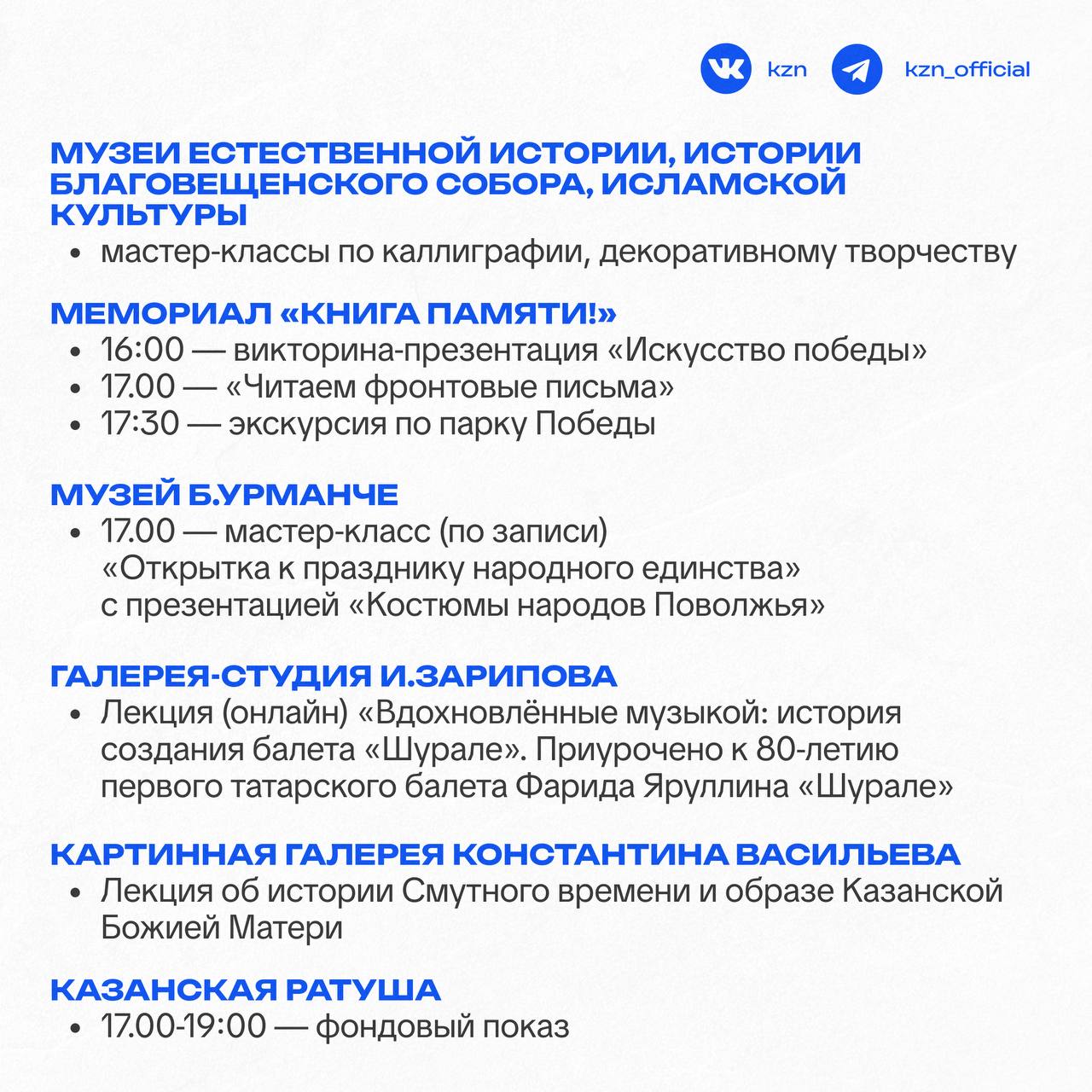 Ко Дню народного единства в Казани запланирована масштабная программа. Делимся мероприятиями в карточках