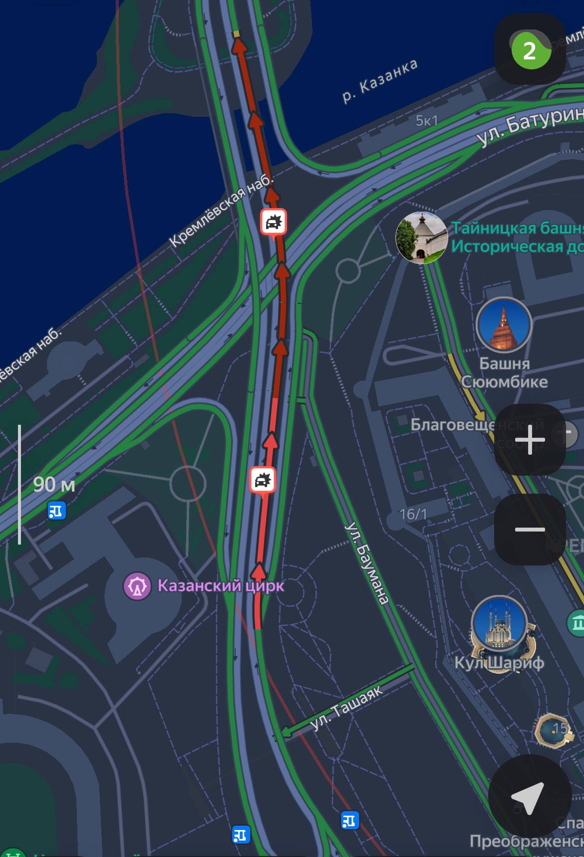 На Кремлевской дамбе в Казани из-за ДТП собирается пробка