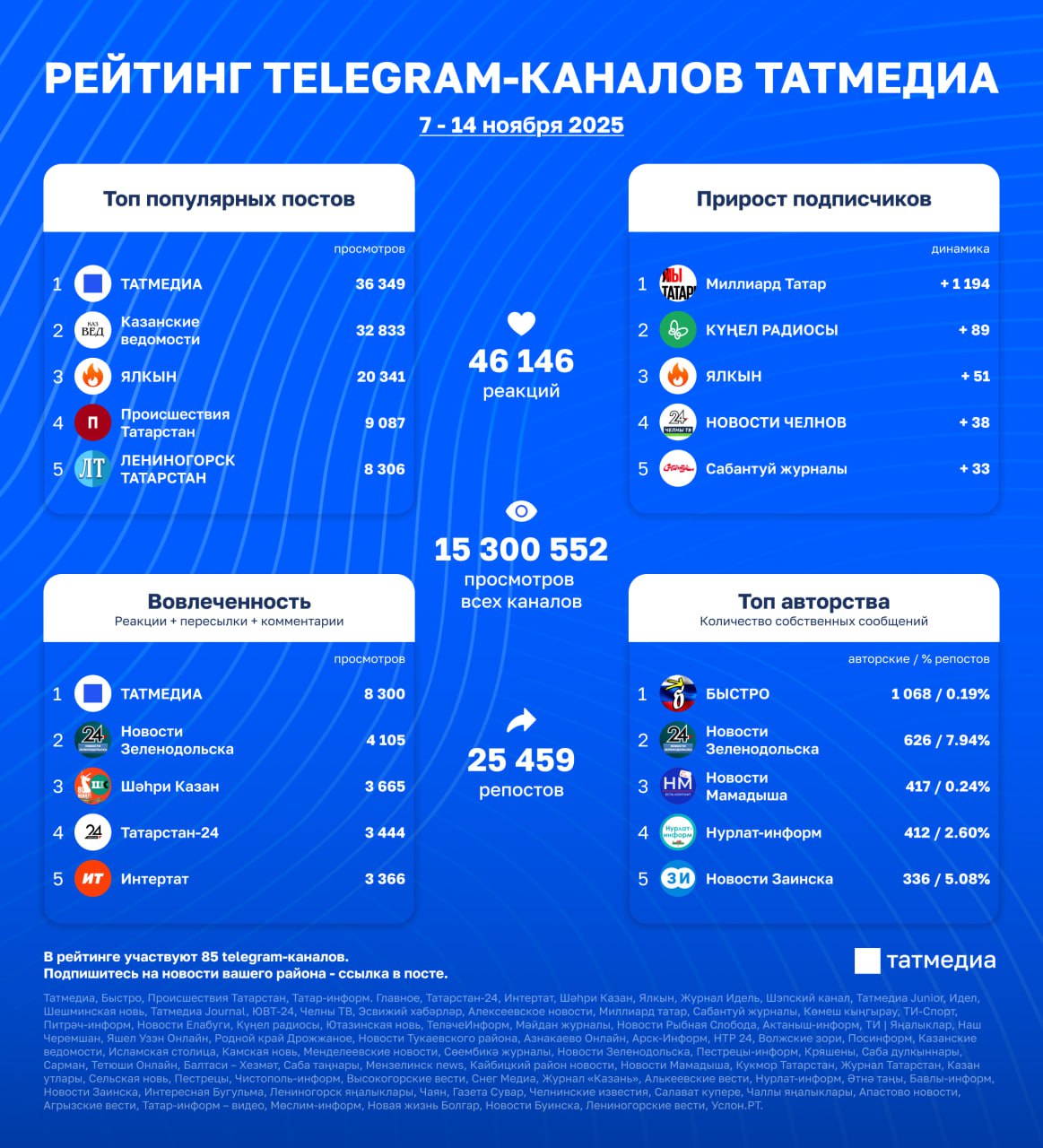 Анализируем показатели tg-каналов Татмедиа | 7 - 14 ноября