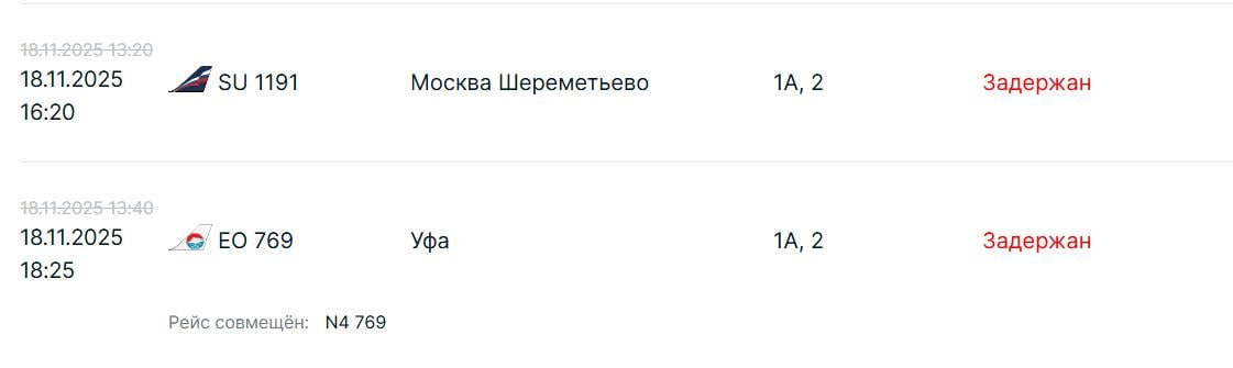 Так, на пять часов перенесли вылет в Шереметьево — с 10:50 на 15:50. В московском аэропорту на вылет в Казань на пять часов задерживают самолет «Аэрофлота» — он должен был вылететь в 10:00, но его перенесли на 15:00.