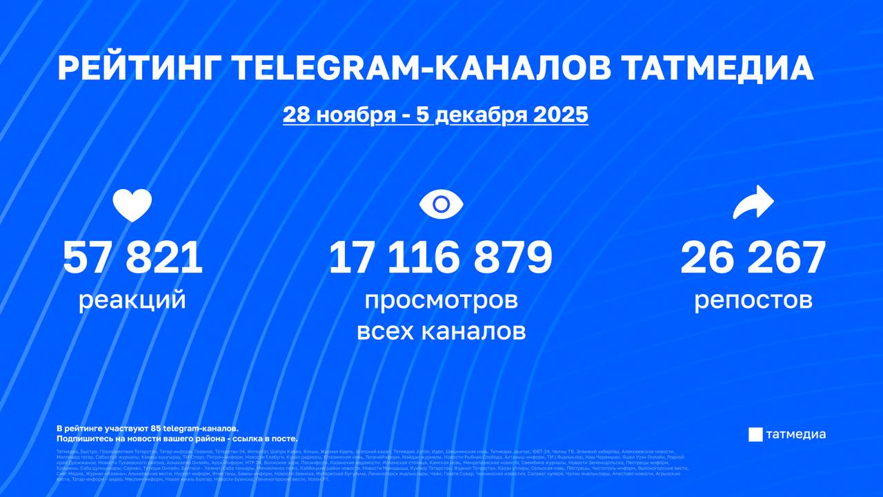 Новый рейтинг telegram-каналов Татмедиа | 28 ноября - 5 декабря