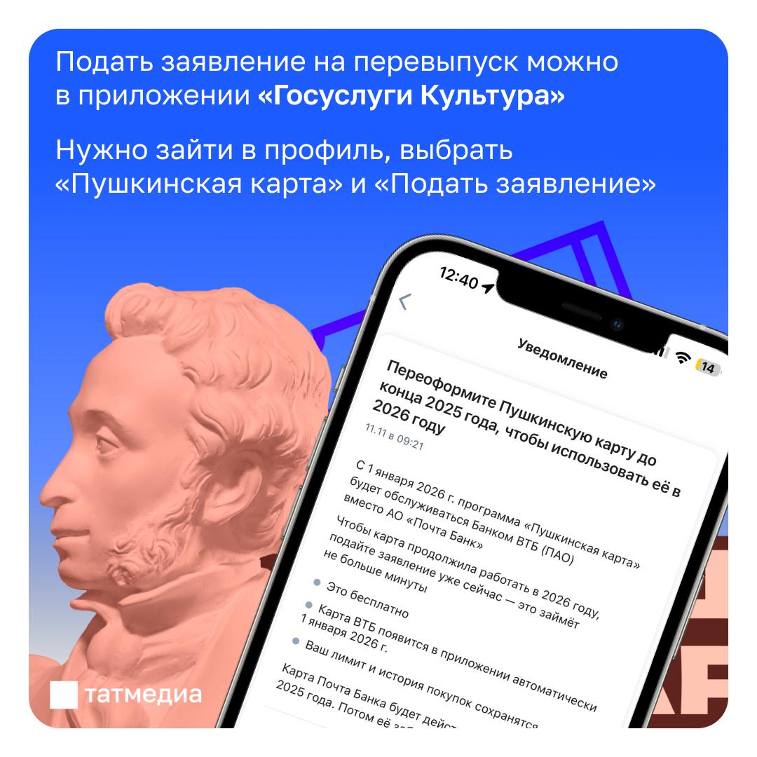 Минкультуры Татарстана напоминает о необходимости переоформить «Пушкинскую карту»
