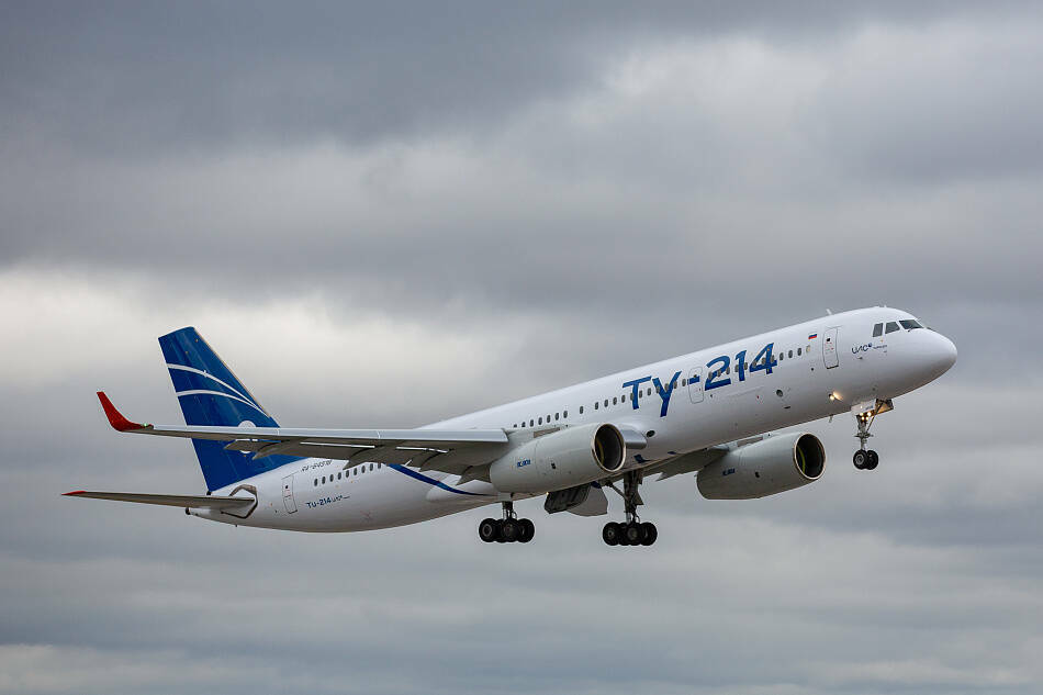 Ту-214 – среднемагистральный узкофюзеляжный пассажирский самолёт, выпускается с 1996 года. В декабре 2025 года совершил первый полёт обновлённый вариант из отечественных комплектующих, уже получивший свидетельство Росавиации.