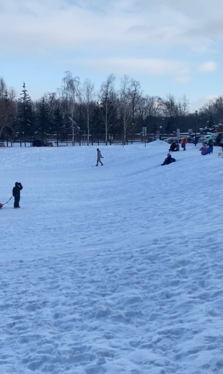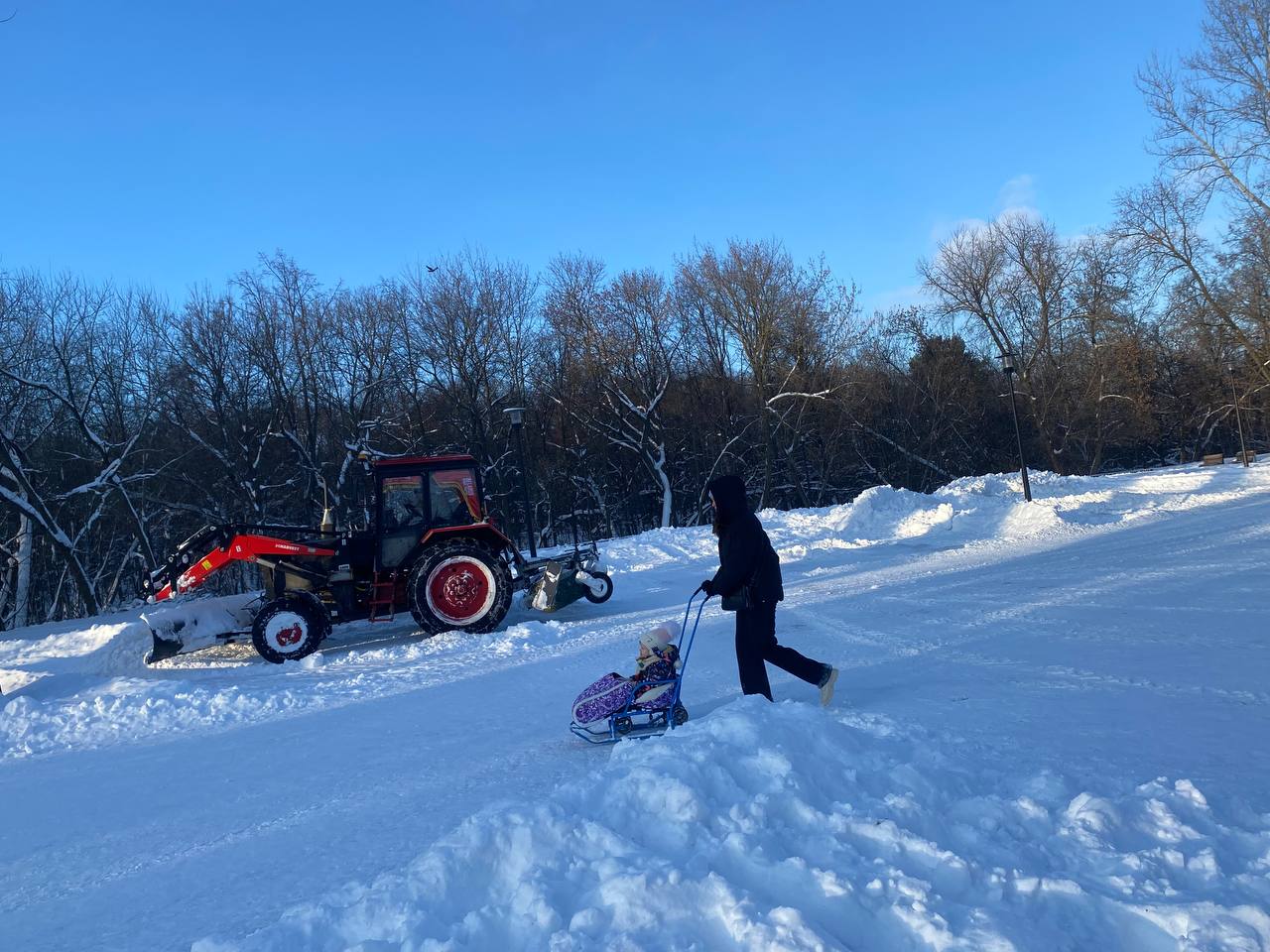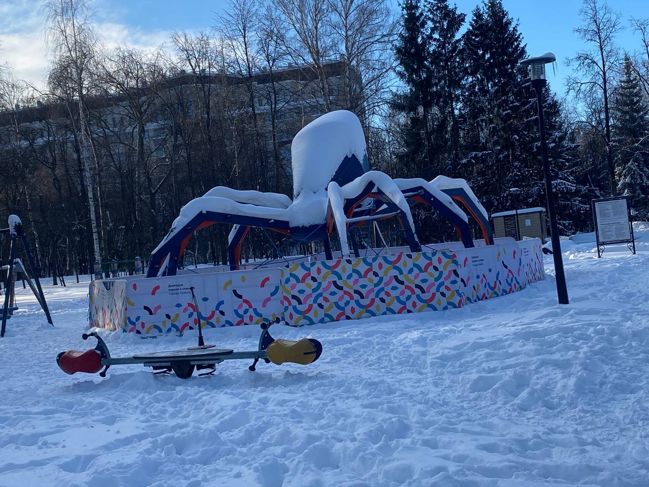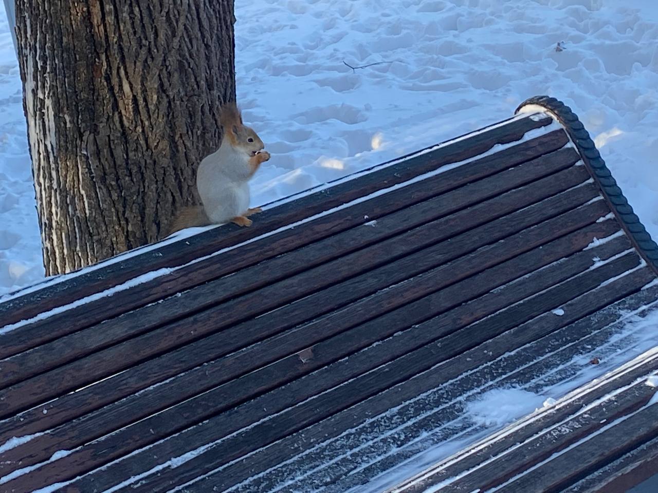 В парке им. Горького нас встречает огромная шишка. Может, потому что здесь много белочек? Днём в парке много лыжников и детишек с родителями, ведь тут большая горка. Не ленятся отдыхающие дойти и до елочки. Она прекрасна в любое время суток.
