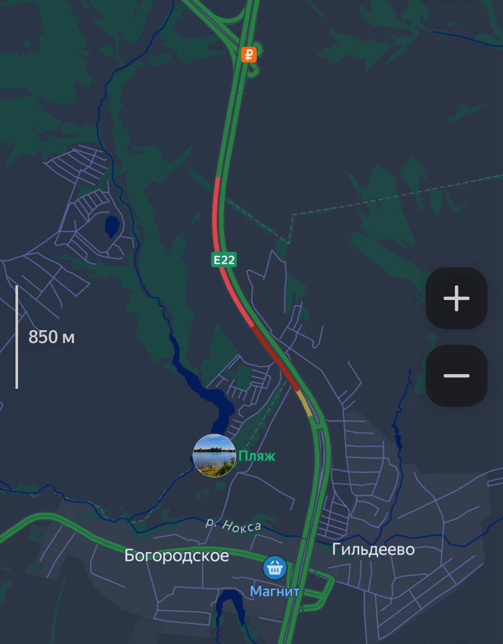 Под Казанью на трассе М-7 в сторону Набережных Челнов образовалась большая пробка