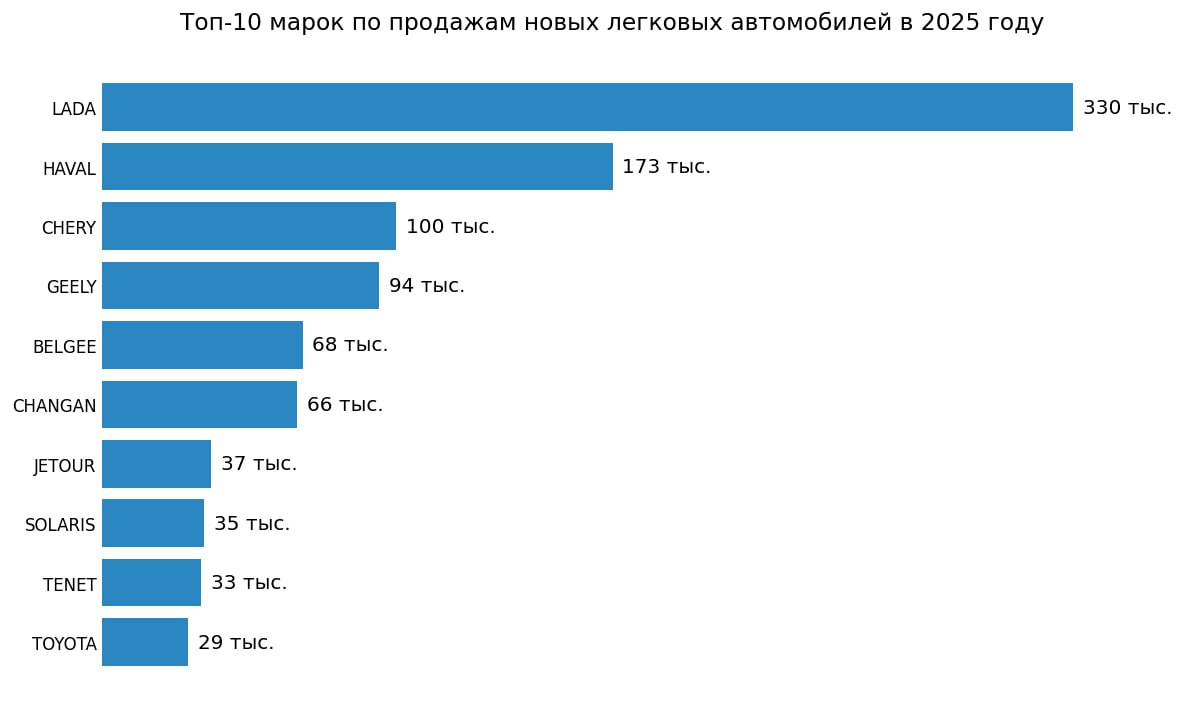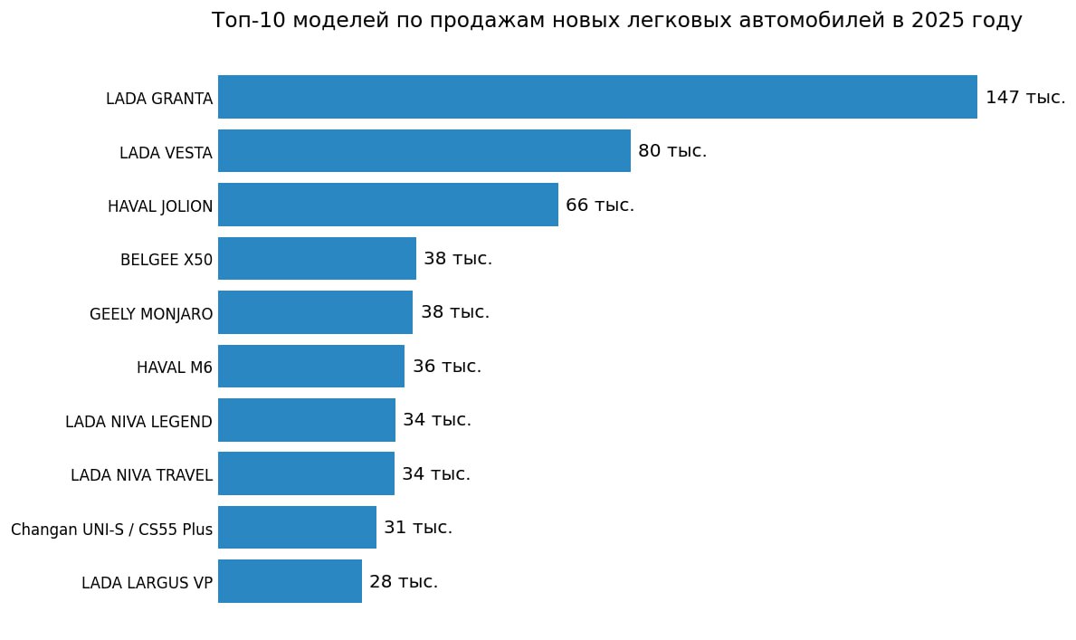 В целом в 2025 году в России продали 1,349 млн новых легковых и легких коммерческих авто. Если учитывать альтернативные поставки, рынок составил 1,367 млн машин – это на 17% меньше, чем годом ранее, следует из данных Комитета автопроизводителей Ассоциации европейского бизнеса.