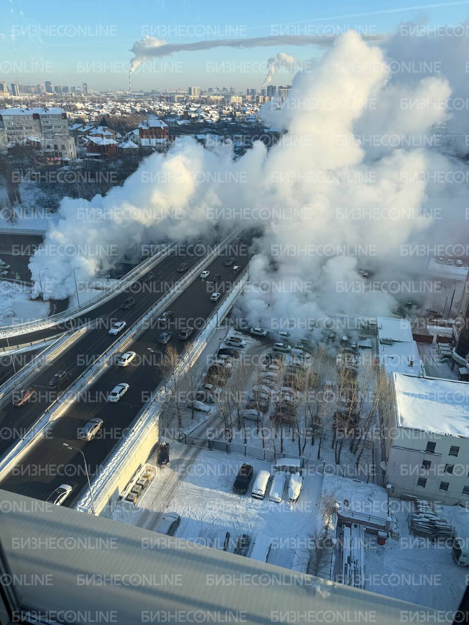 Судя по фото, пар может идти из канализации. БИЗНЕС Online направил запрос в пресс-службу ГУ МЧС РФ по РТ для уточнения информации.