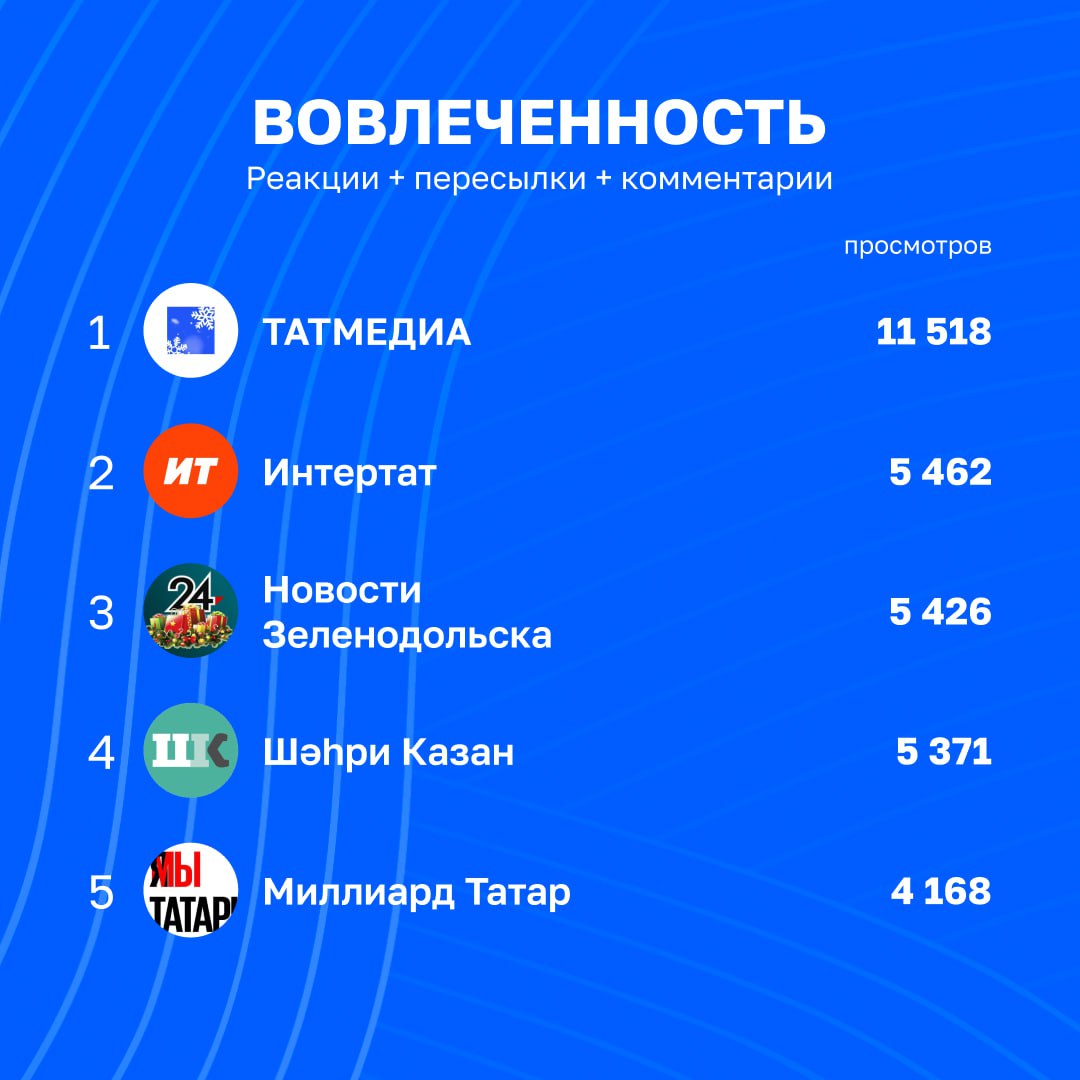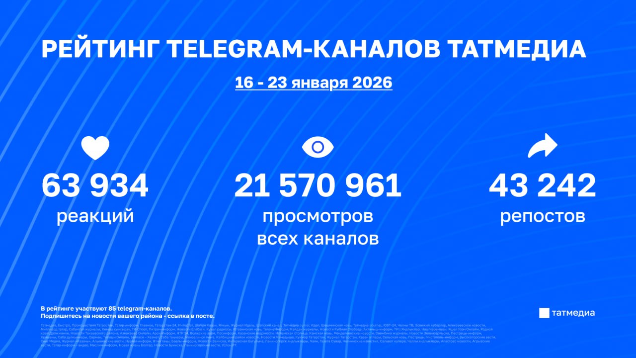 Свежая статистика telegram-каналов Татмедиа | 16 - 23 января