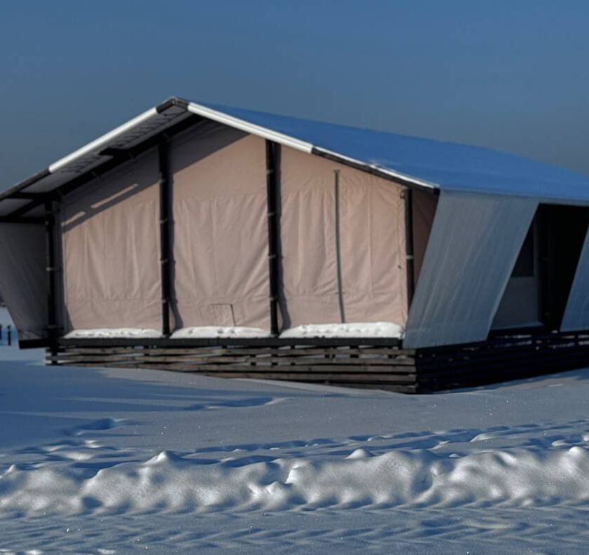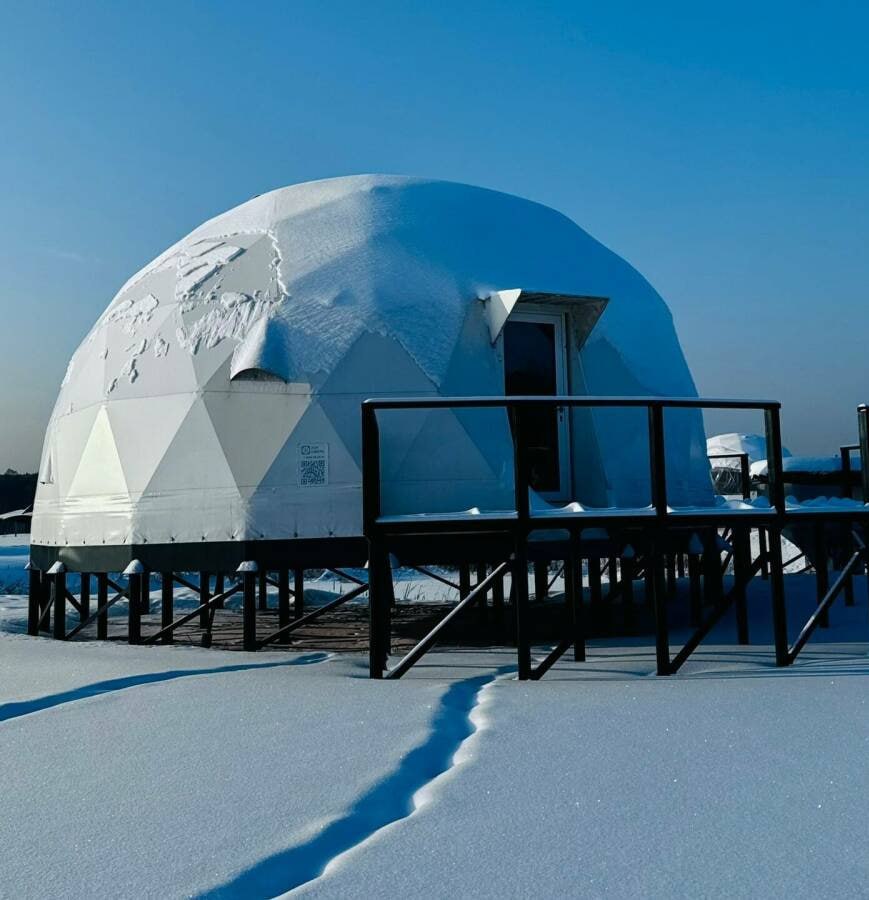 Сейчас на площадке уже построено несколько домов, строительство продолжается, туристов объект пока не принимает.