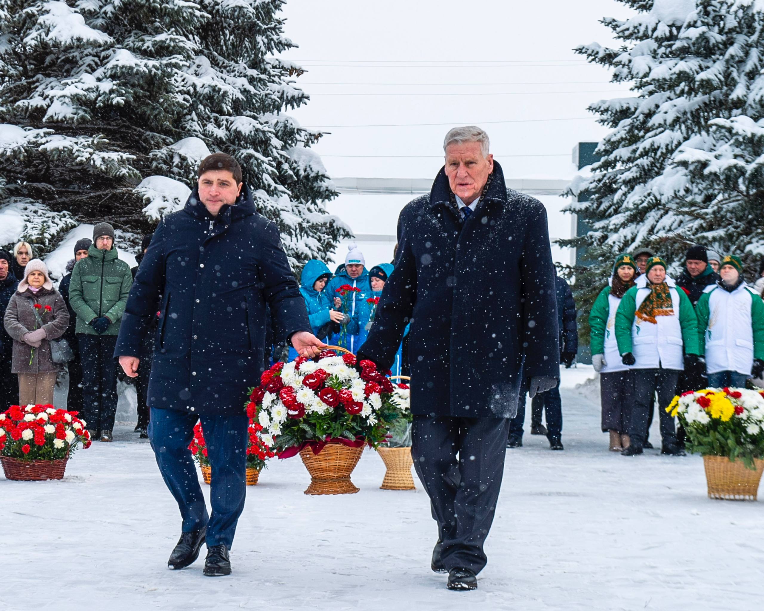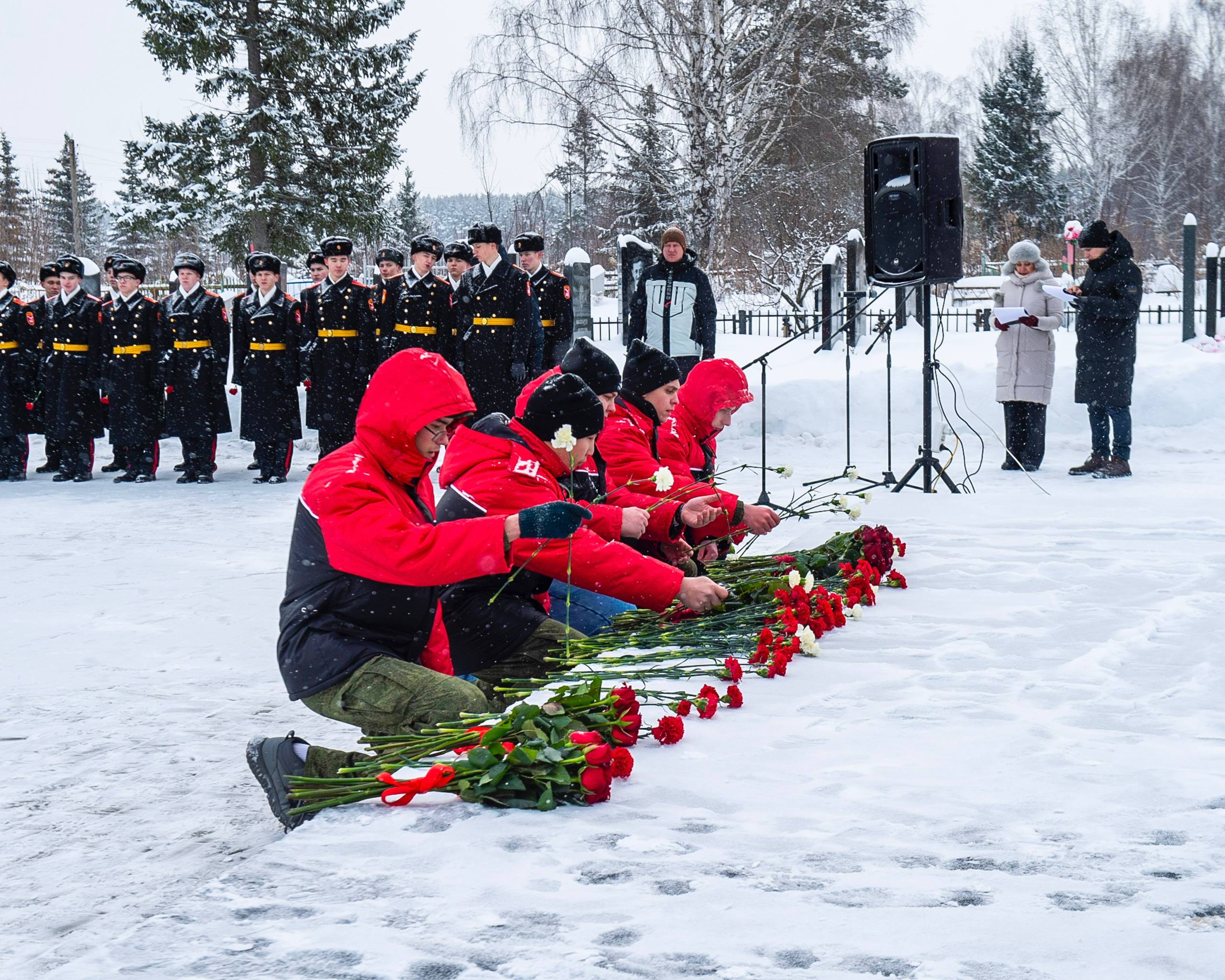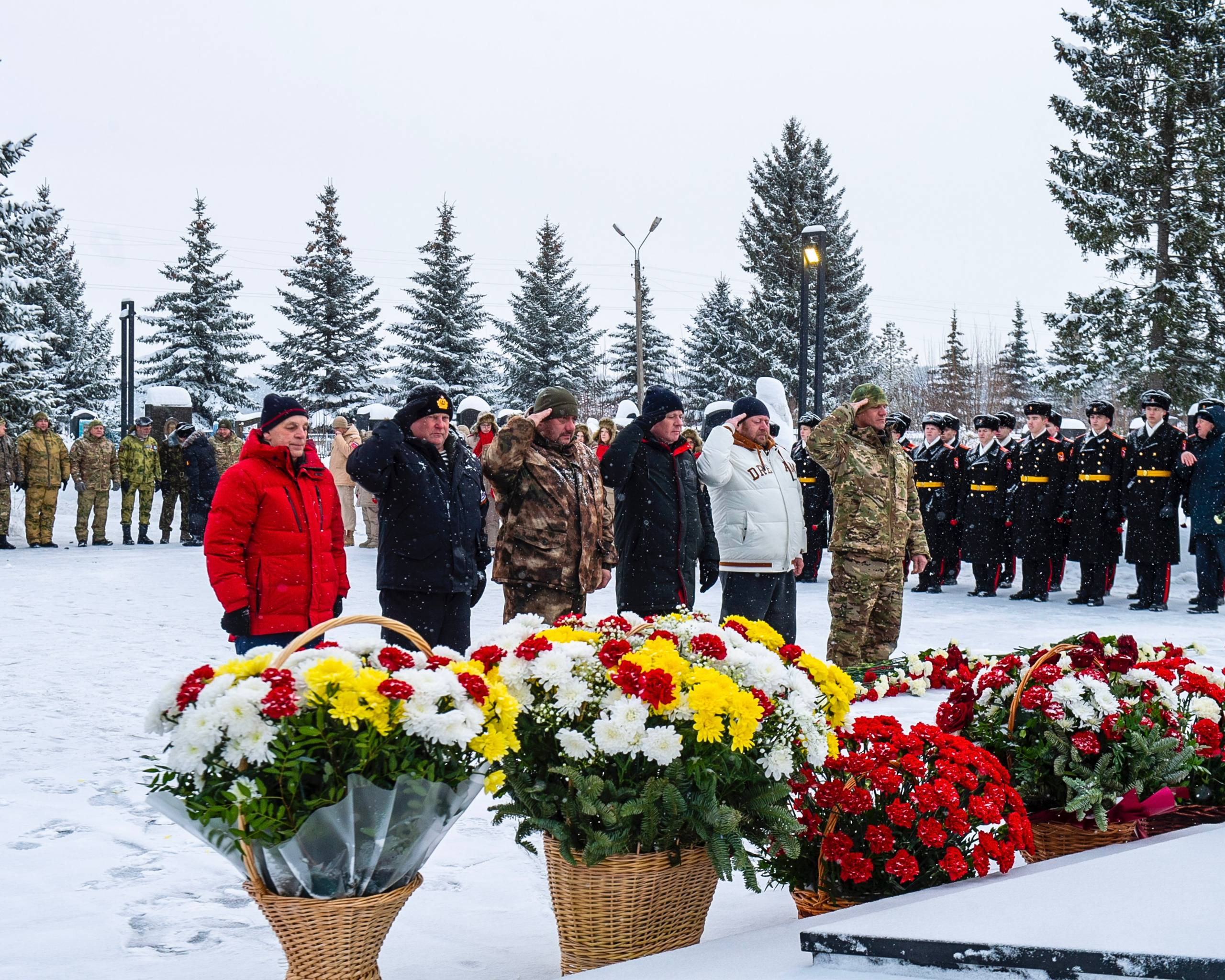 На центральной аллее Почётных граждан собрались руководители городских управлений, родственники погибших, представители градообразующих предприятий, общественных организаций, поисковых отрядов, волонтёры и юнармейцы, чтобы почтить память героевземляков.