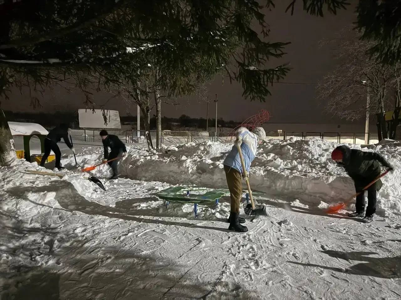 Родители дошколят из Тукаевского района взялись за лопаты и помогли расчистить снег на территории детских садов.