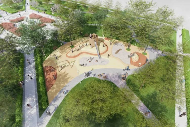 Ремонт начнется в этом году с установки детской площадки, которая будет разделена на зоны для детей разных возрастов. Архитекторы выбрали теплые оттенки покрытия, а ключевым элементом станет круглая башня, напоминающая крепость в Тебризе.