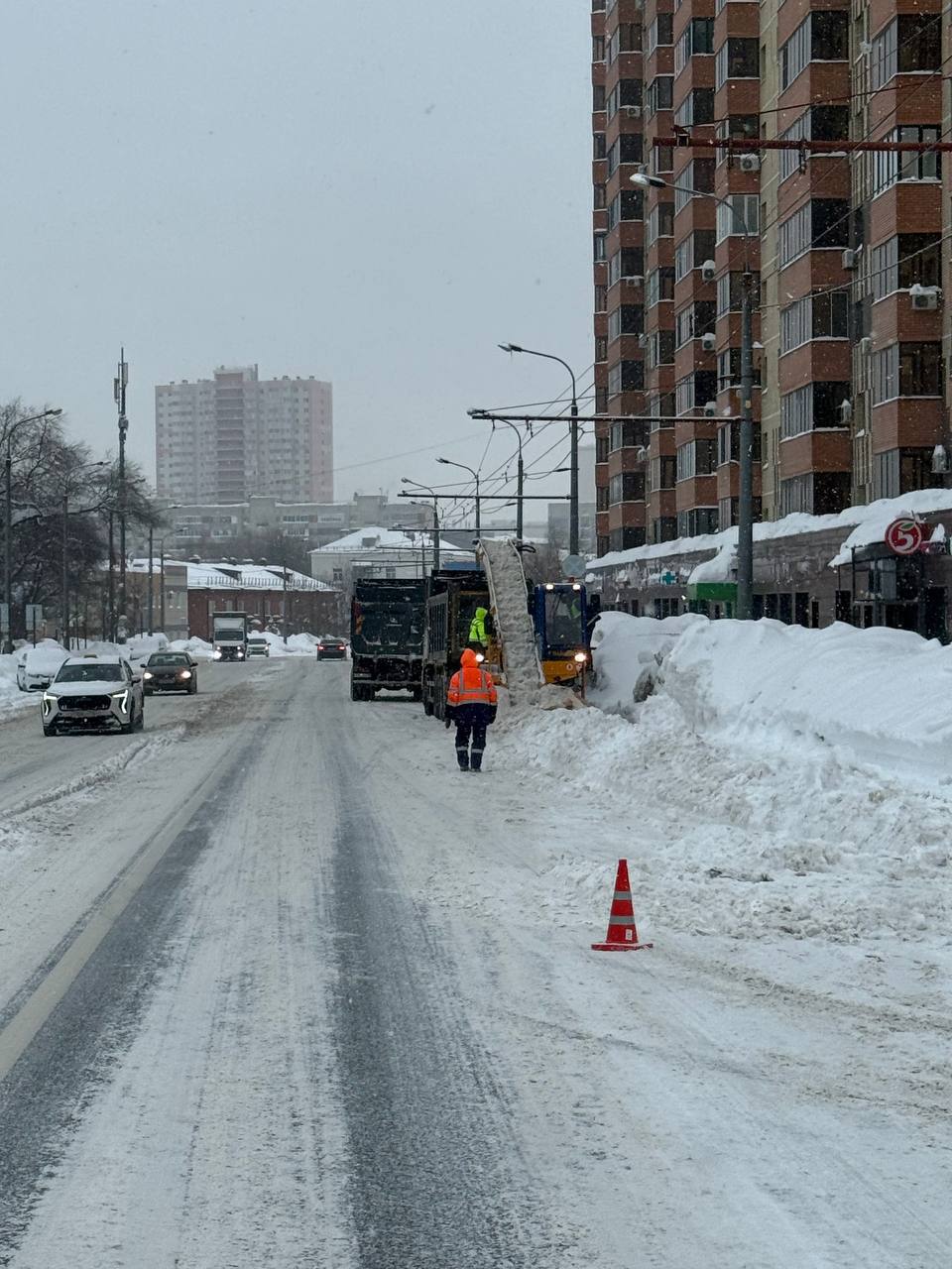 575 рабочих и 641 единица техники сейчас разметают дороги, проводят обработку противогололедными материалами, очищают тротуары, вывозят снег. Эти операции будут повторять до окончания снегопада.