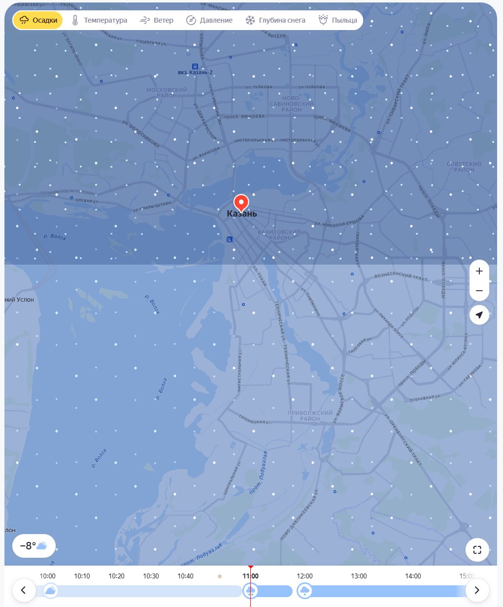 Начнется он сегодня в 11 часов, по данным сервиса "Яндекс Погода". По прогнозу, снегопад продлится до самой ночи.