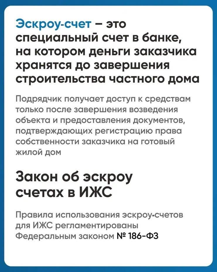 На рынке индивидуального жилищного строительства (ИЖС) действуют эскроу-счета для строительства частных домов с привлечением подрядной организации, в том числе с использованием домокомплектов.
