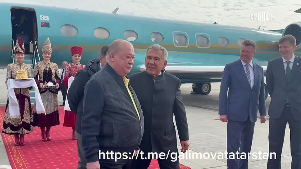 В аэропорту его встретил глава Татарстана Рустам Минниханов.