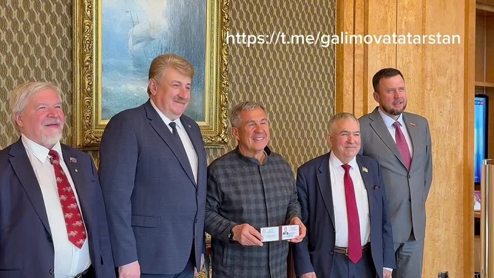вручил Рустаму Минниханову удостоверениеДо начала церемонии вступления в должность Рустам Минниханов проводит встречу с руководителями региональных отделений политических партий,принимавших участие в выборах Раиса...