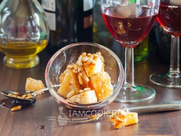 Пармезан, мед, бальзамический уксус и пиниевые орехи — это идеальное сочетание для гурманов. Всего 5 минут приготовления, и ваше блюдо готово!