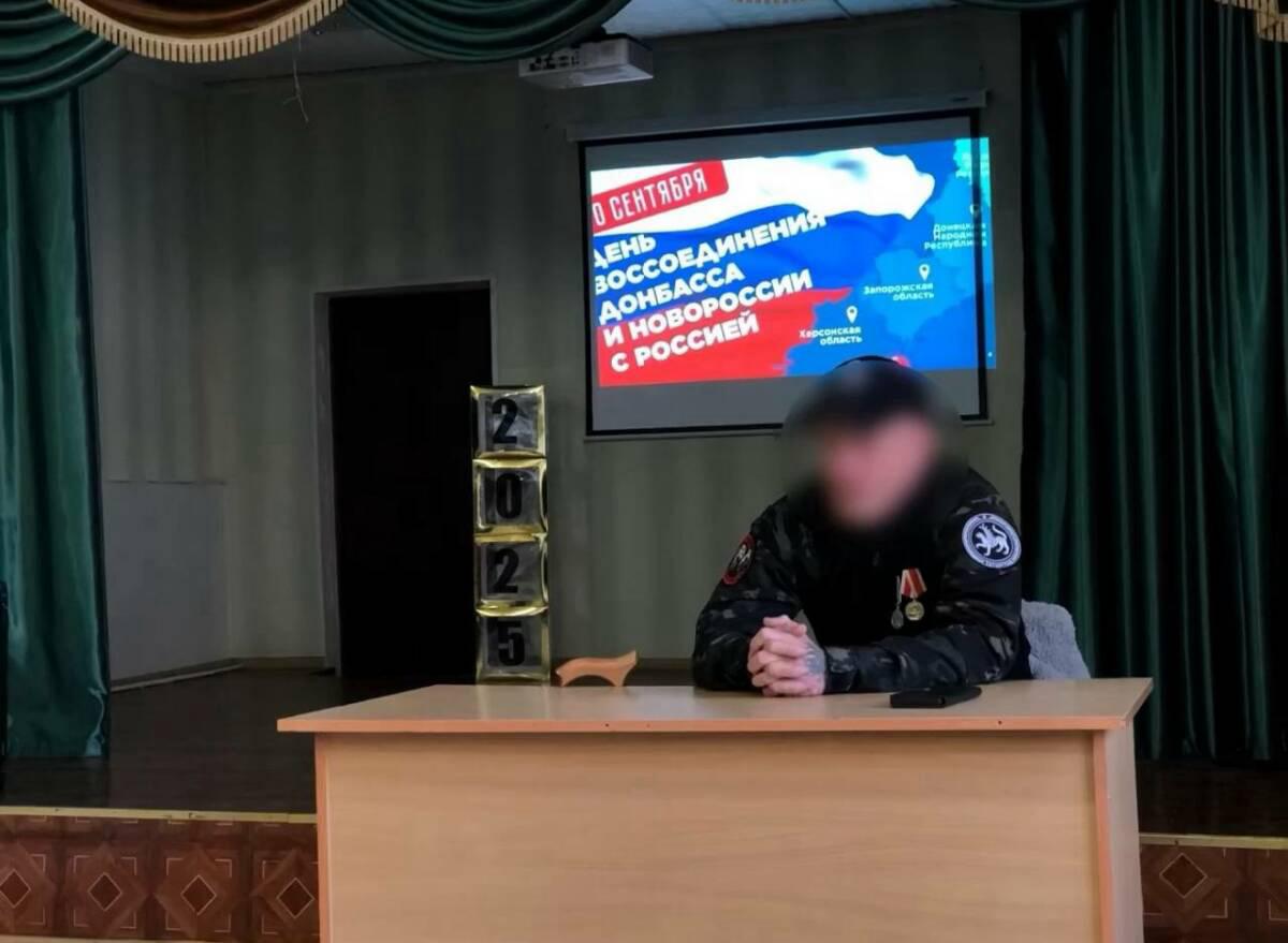 Урок мужества в школе №13 приурочен к Дню воссоединения Донецкой и Луганской Народных Республик, а также Запорожской и Херсонской областей с Россией.