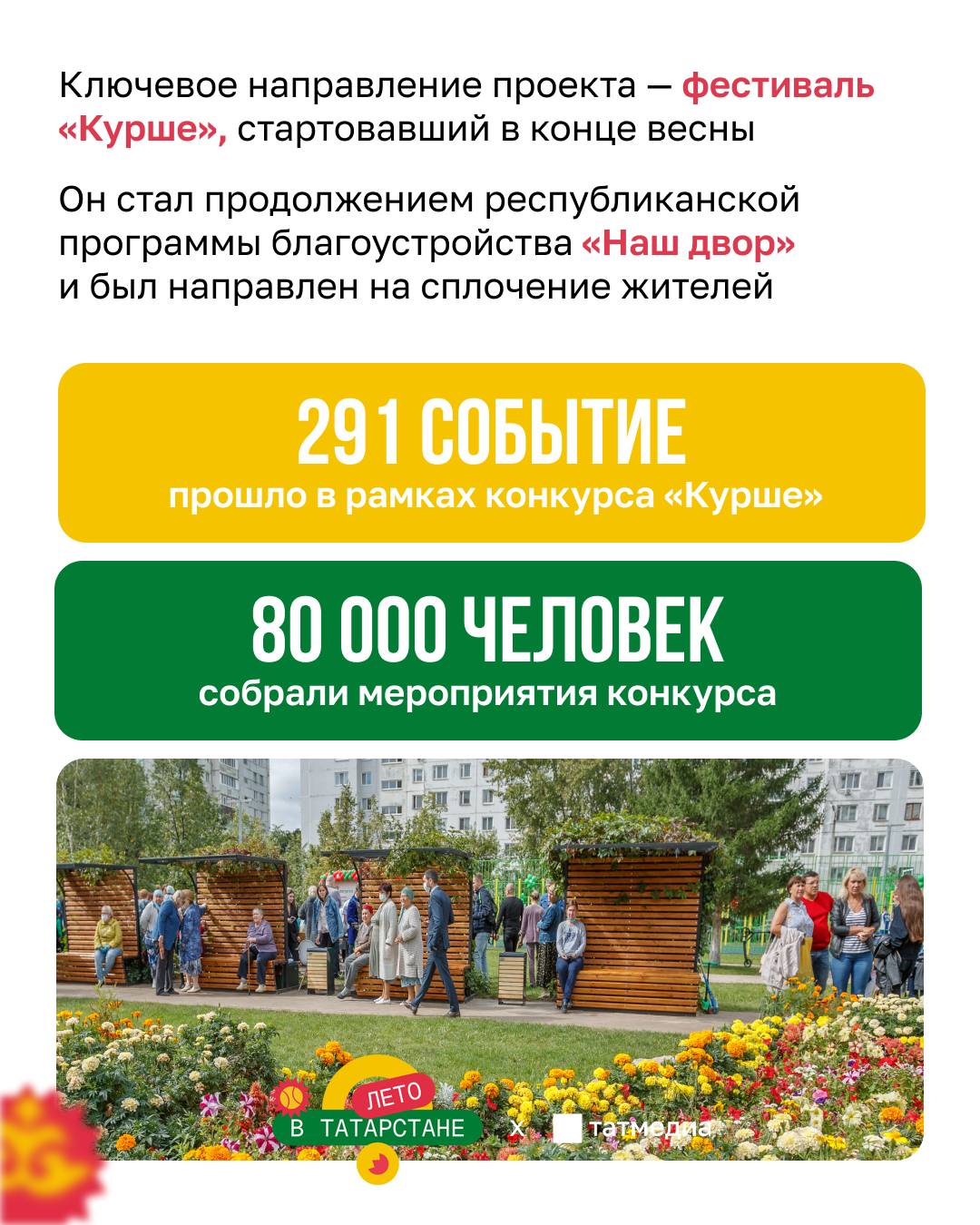 Мероприятия программы привлекали не только татарстанцев, но и жителей других регионов. О результатах прошедшего лета - в карточках.