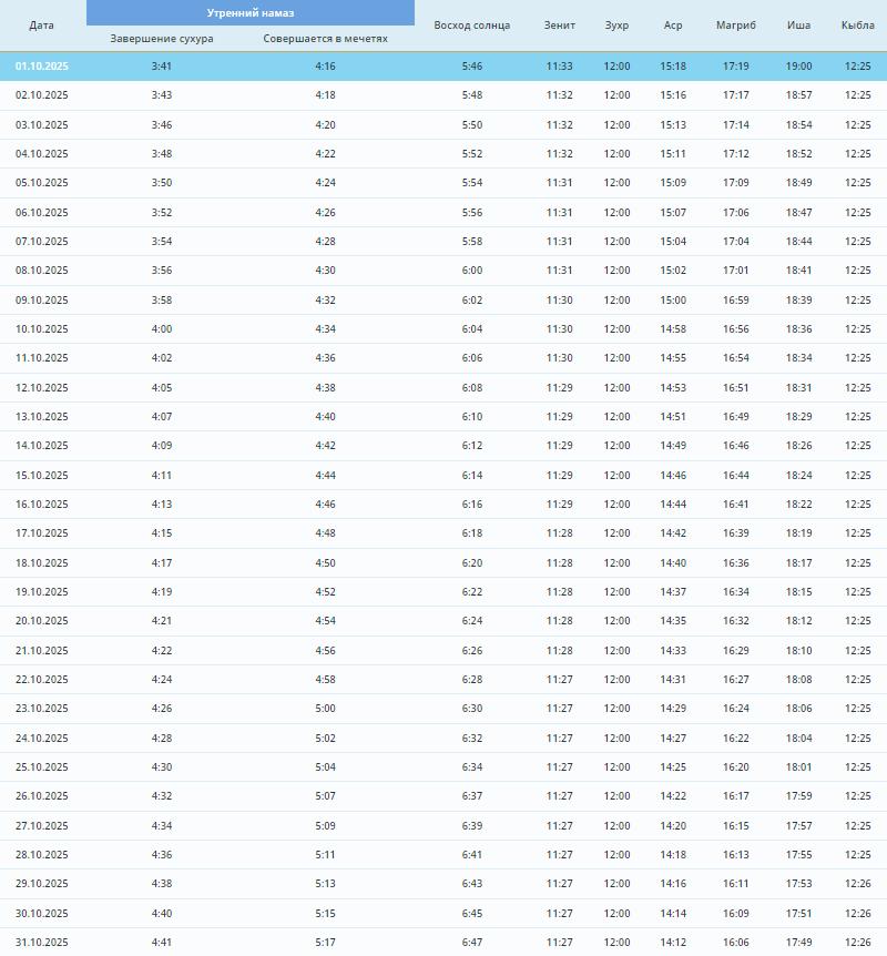 Духовное управление мусульман Татарстана опубликовало время намазов в Казани на октябрь