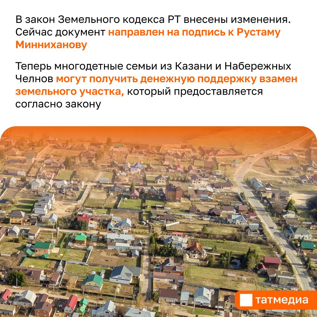 Некоторые семьи Татарстана смогут выбрать между денежной выплатой и земельным участком
