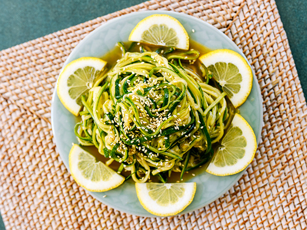 Важно отметить, что в этом блюде используются именно цукини, а не белые кабачки, поскольку их структура более нежная и сладкая, что делает их идеальными для впитывания заправки.