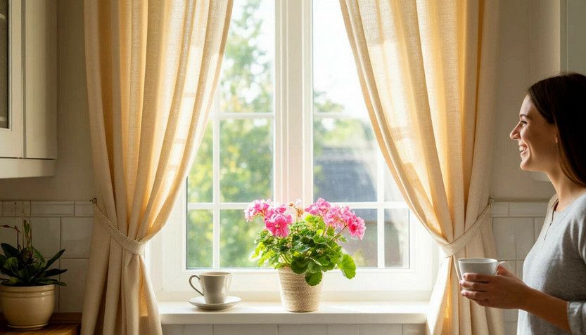 На следующее утро свет, проходящий через только что выстиранные шторы, удивительно изменил атмосферу кухни. Лучи солнечного света, пробивавшиеся сквозь свежие занавески, наполнили комнату яркостью и теплом. Это открытие стало началом нового взгляда на обстановку в квартире. Подоконник с растениями, столешница и даже чайник блестели как никогда! Очевидно, что загрязненные занавески способны «съедать» до 40% света, делая пространство более тусклым.