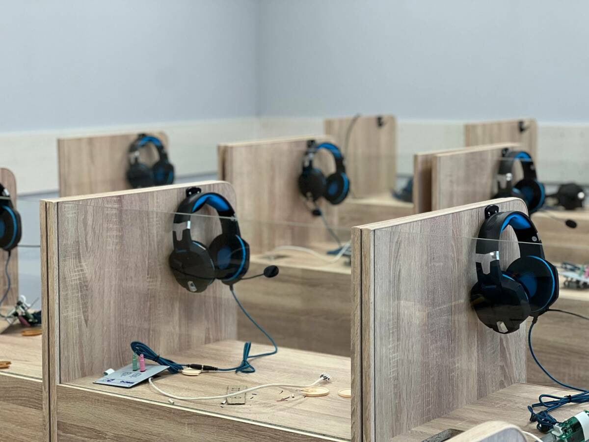 Для школы были приобретены комплекты оборудования для лингафонных кабинетов с мультимедийными элементами.