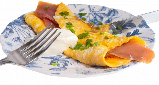 Омлет с алкоголем и лососем