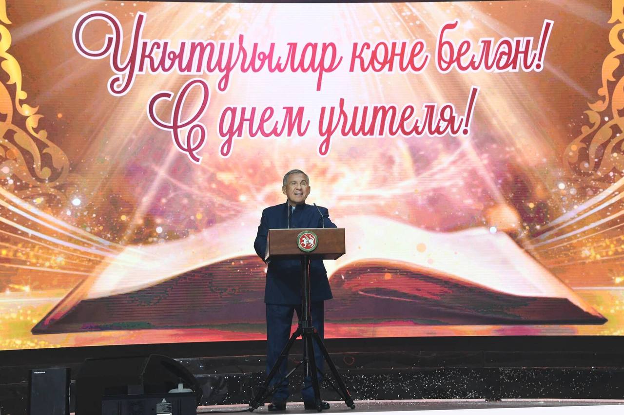 Раис Татарстана Рустам Минниханов поздравил педагогов республики с Международным днем учителя на торжественном мероприятии, прошедшем в ГТРК «Корстон» в Казани. Об этом сообщили в пресс-службе Раиса РТ.