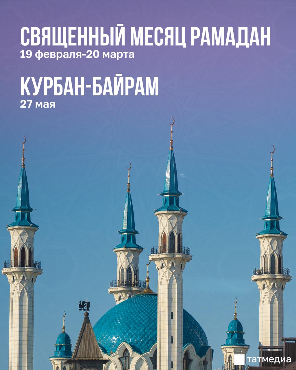 Согласно утвержденному расписанию, священный месяц Рамадан начнется 19 февраля и завершится 20 марта праздником Ураза-байрам. Курбан-байрам отметят 27 мая. Оба праздника приходятся на будние дни.