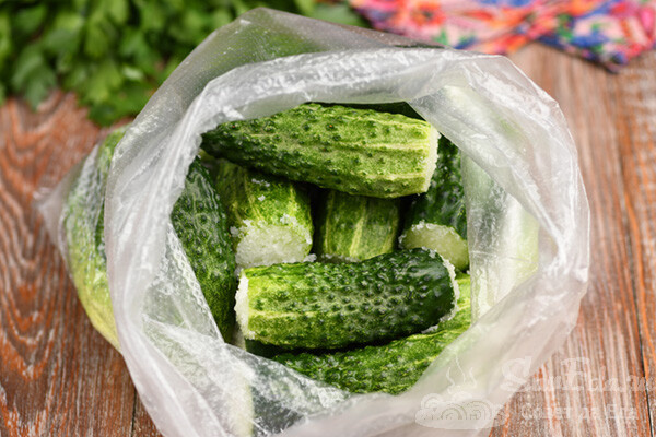 После указанного времени пакет открывается, и малосольные огурцы готовы к подаче. Они сохраняют свой яркий цвет, хрустящесть и великолепный аромат. Это идеальная закуска, которая прекрасно дополнит любое блюдо.