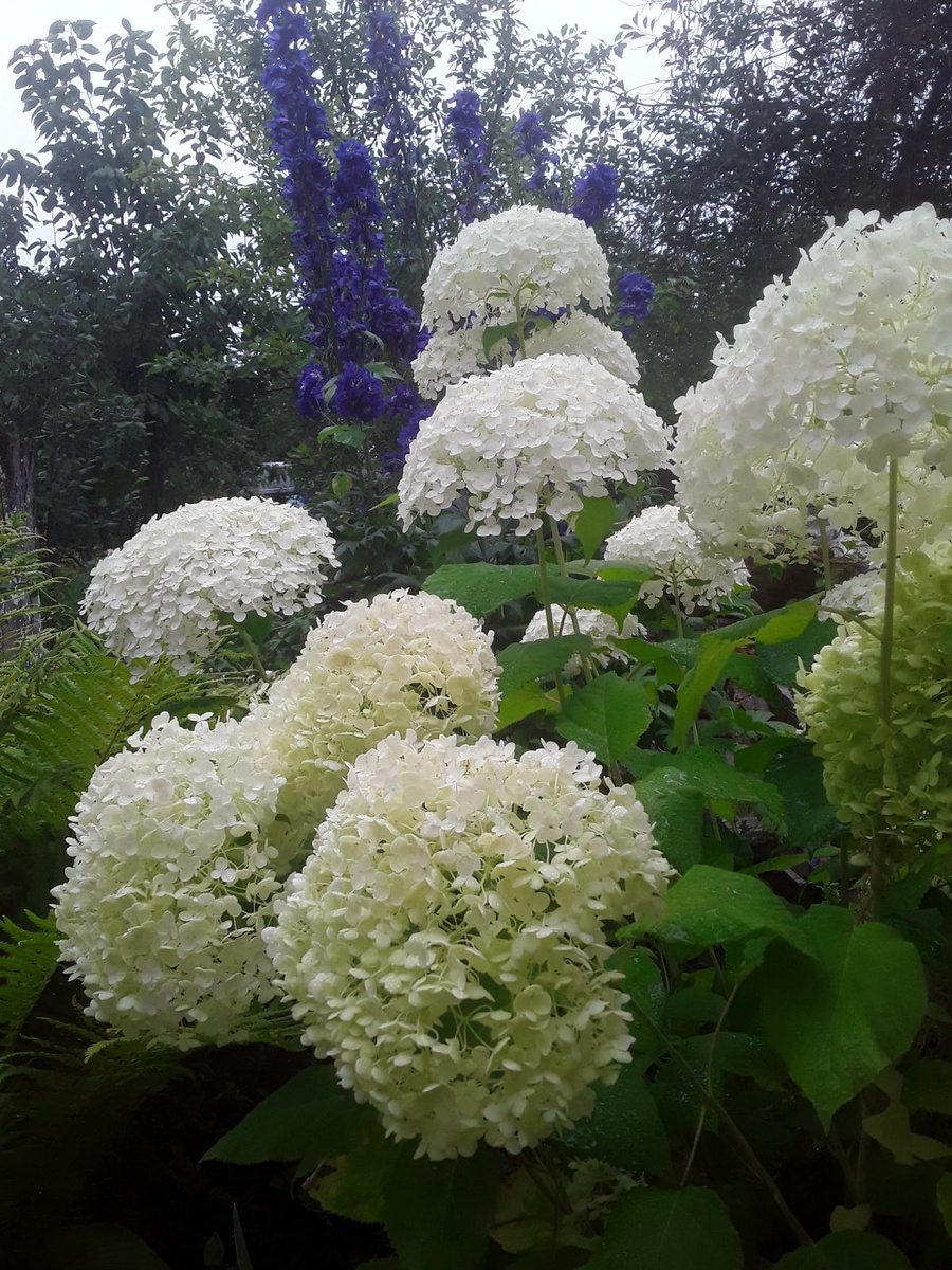 Одним из лучших сочетаний, которое можно встретить в осенних цветниках, является белый и синий. Интересно, как это выглядит в конкретных примерах: древовидная гортензия и дельфиниум, например, образуют уникальную палитру, которая радует глаз и создаёт уютное настроение в саду.