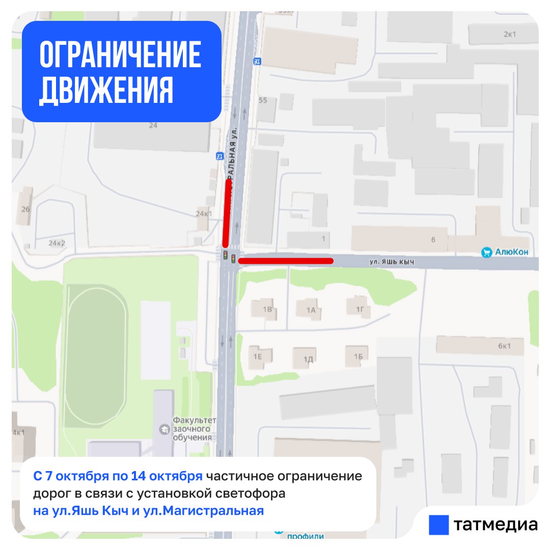 по ул.Яшь Кыч, в районе здания №1 и по ул.Магистральная, в районе здания №24/1