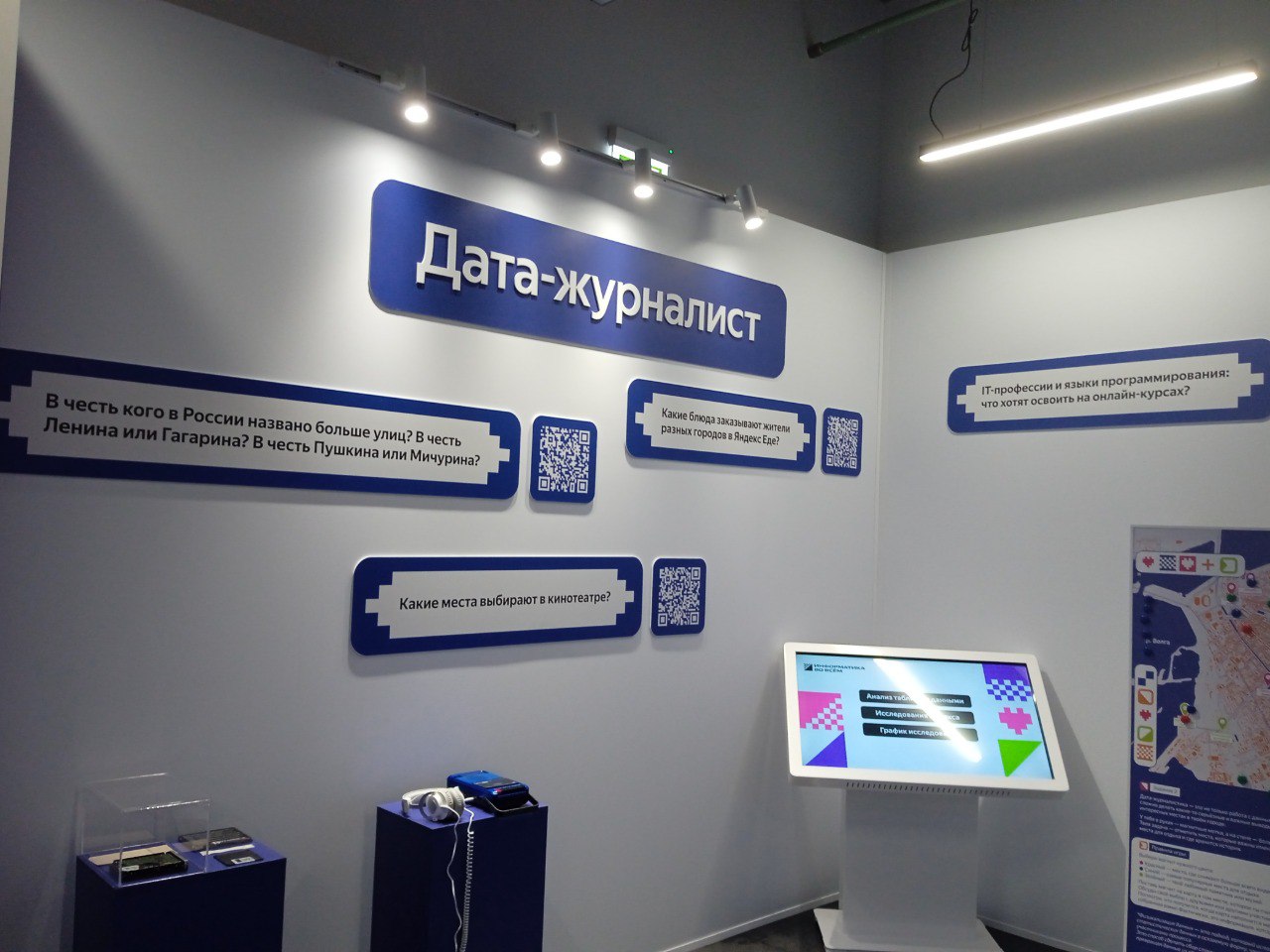Вторая зона экспозиции — «Профессии будущего» — наглядно показывает, как далеко шагнули технологии. Здесь понимаешь, что IT-навыки сегодня нужны не только программистам, но и самым разным специалистам: от AI-тренеров и дата-журналистов до промышленных дизайнеров.