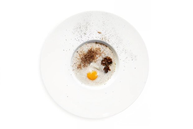 4. В сервировочные тарелки выложить по яйцу, добавить оставшиеся грибы и залить богатым грибным бульоном. При желании посыпать свежемолотым черным перцем и тертыми трюфелями для финального акцента во вкусе.